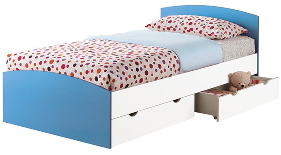 Otroška postelja Strumf 90x200 z dvema priročnima predaloma združuje moderen dizajn in funkcionalnost. Postelja je razstavni eksponat in je na voljo le v dimenziji 90x200 in vključuje letveno dno.