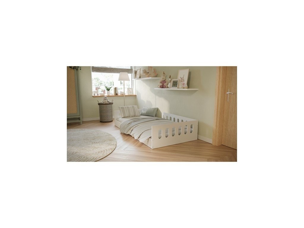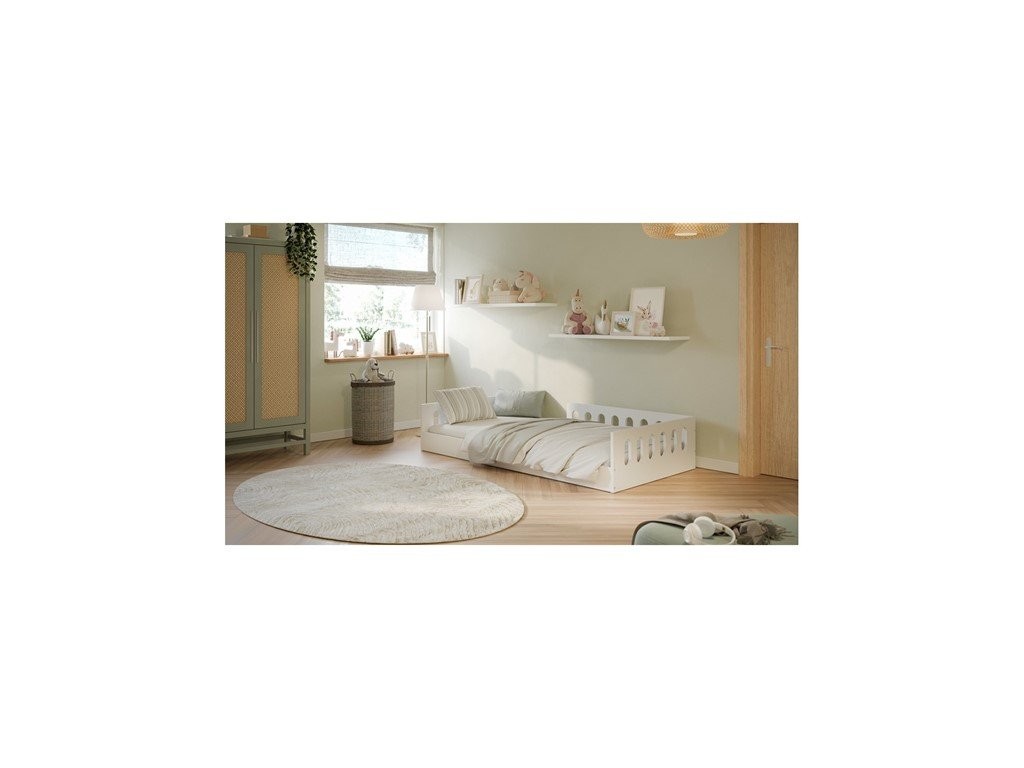 Ker je model na voljo v več dimenzijah, ga je lažje prilagoditi velikosti prostora in potrebam otroka. Postelja je zasnovana po načelih Montessori in spodbuja samostojnejšo uporabo, hkrati pa vključuje odstranljivo varnostno ograjo. Konstrukcija omogoča boljše kroženje zraka, največja nosilnost znaša do 100 kg, izbirate pa lahko med izvedbo brez ležišča ali z ležiščem.