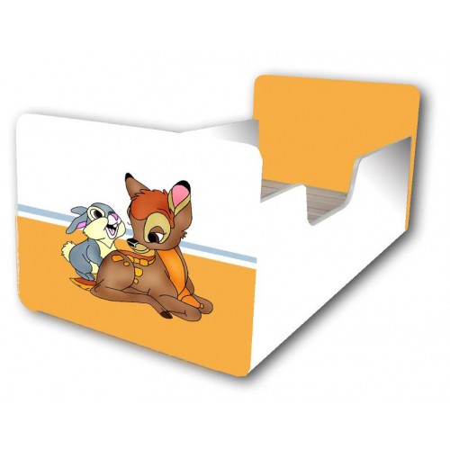 Otroška posteljica PRIJATELJA (bela-bež) z letvenim dnom iz masivnega lesa je unikatna otroška postelja z motivom prikupnega medvedka in gosenice. Otroška postelja je na voljo v različnih dimenzijah, narejena iz MDF plošče, barvane z barvami na vodni osnovi, ki so varne za otroke.