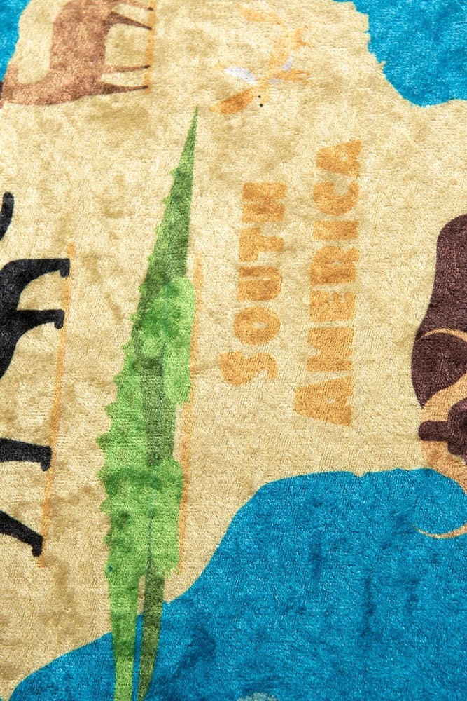Potovanje okoli sveta se začne kar na otroški preprogi ZEMLJEVID 100X160 CM. Svetli barvni odtenki in živahen dizajn bodo pritegnili pozornost vašega otroka, medtem ko bo mehka površina preproge zagotavljala udobje med igranjem.