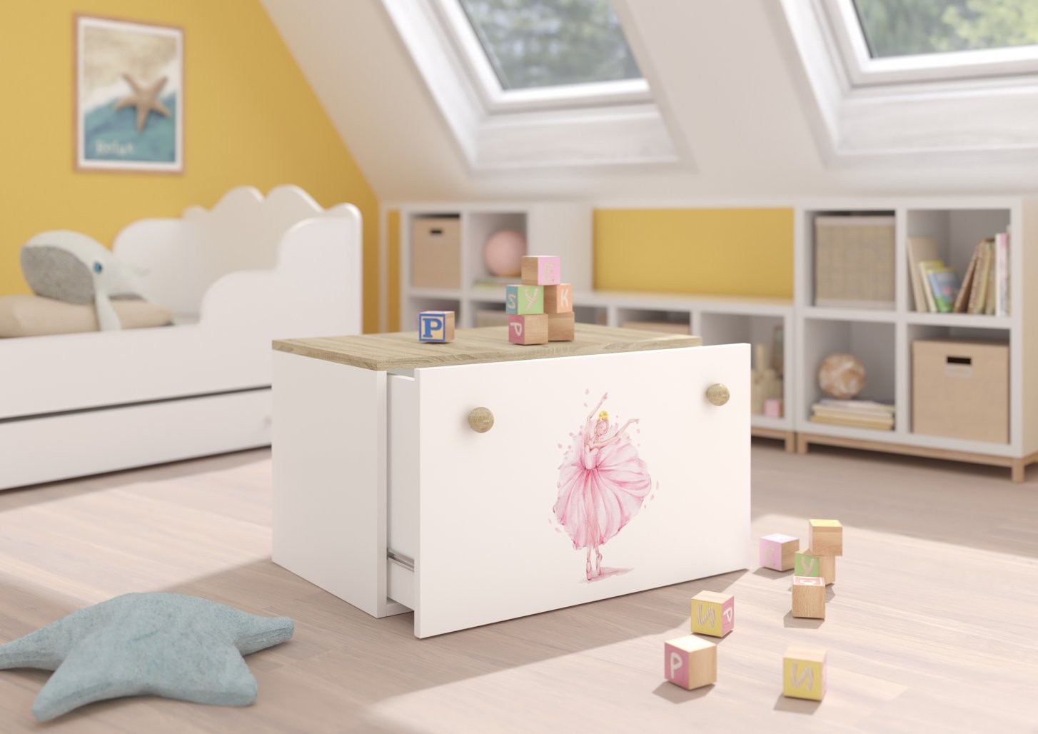 Otroška skrinja za igrače INGA je popolna rešitev za urejeno otroško sobo. Ponuja dovolj prostora za shranjevanje igrač in drugih otroških zakladov, hkrati pa s pisanimi motivi popestri prostor.
