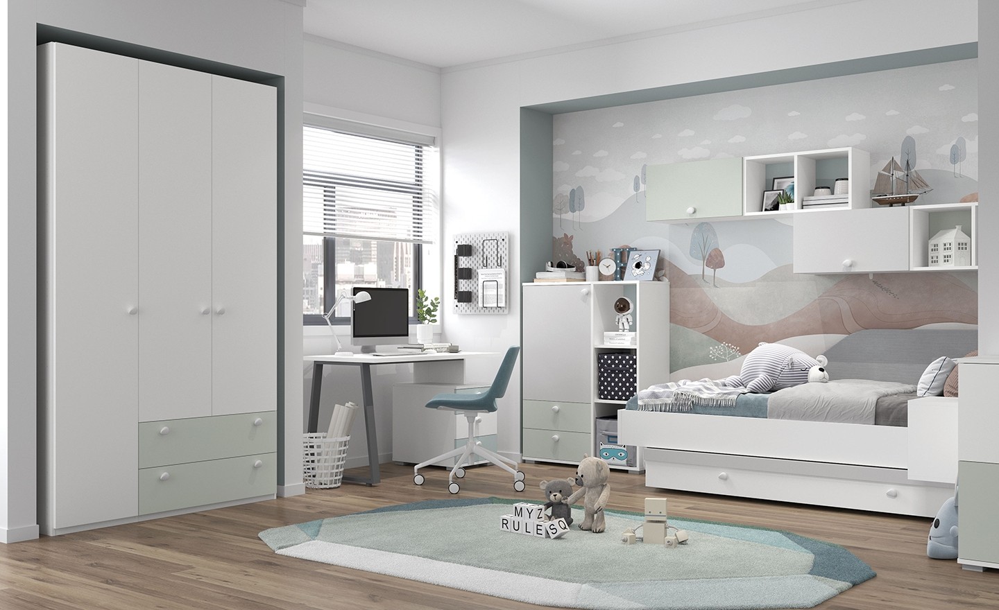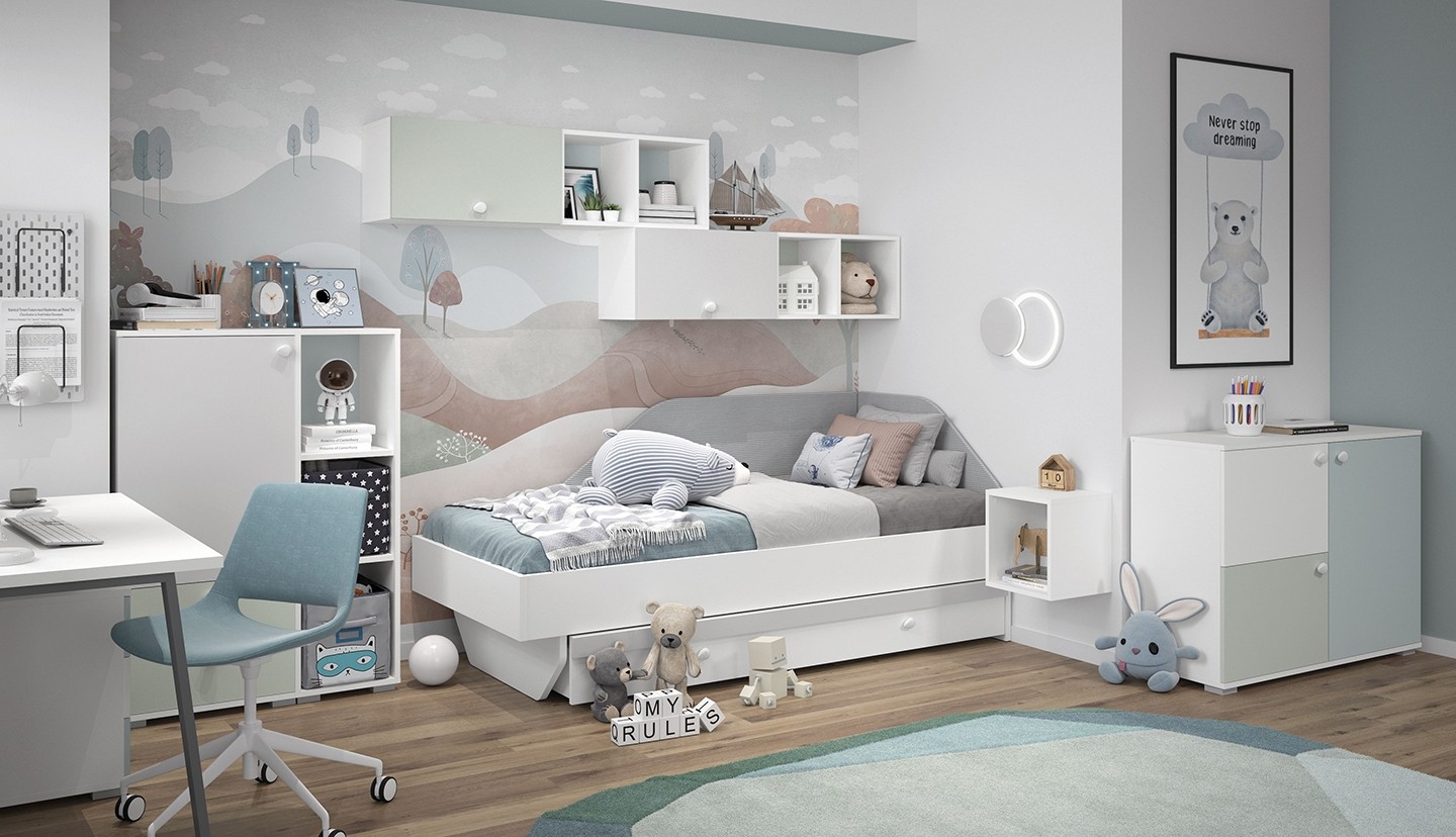 Privoščite otroku moderno in elegantno otroško sobo, ki vas bo navdušila s svojo funkcionalnostjo in prostornostjo. Pri zasnovi te otroške sobe so mislili na vse. Tukaj lahko najdete komodo v kateri bodo šolski učbeniki, prostorno pisalno mizo s predali za šolske potrebščine, dve omari, ki bosta ohranjali urejeno sobo, vitrina in stenski omarici in polici na kateri so lahko spominki ali pa družabne igre. Zraven pa je seveda prostorna postelja, ki otroku omogoči udoben spanec.