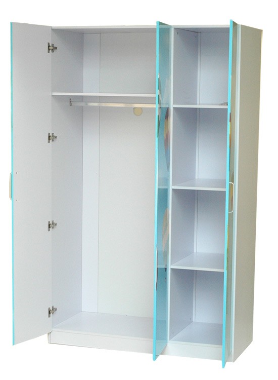 Velika postelja je primerna za vzmetnico v velikosti 120x200 in bo zagotovo poskrbela za dober počitek. Pod posteljo sta dva posebna predala, primerna za shranjevanje posteljnine. Ob postelji bo zagotovo prav prišla tudi nočna omarica z dvema predaloma. Multifunkcijska kotna pisalna miza ima poseben predalnik in police, ki bodo nudile ogromno prostora za shranjevanje zvezkov, knjig in ostalih potrebščin. Tudi 3-delna omara je izjemno prostorna, ki ima obešalni drog in police. Da bo komplet popoln in v stilu, pa bo poskrbel tudi vrtljiv pisalni stol z nastavljivo višino.
