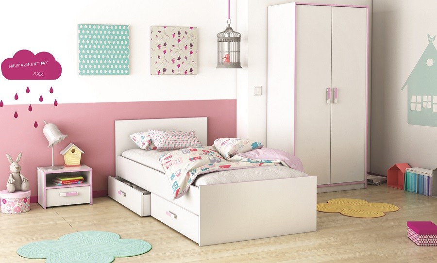 Otroška soba SWITCH je univerzalna otroška soba, saj je namenjena tako deklicam kot dečkom. Otroška sobica je na voljo v beli barvi z možnostjo nastavitve roza ali modrih detajlov in bo vašemu malčku nudila vse potrebno za prijetno vzdušje.