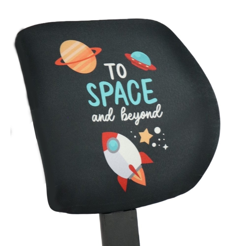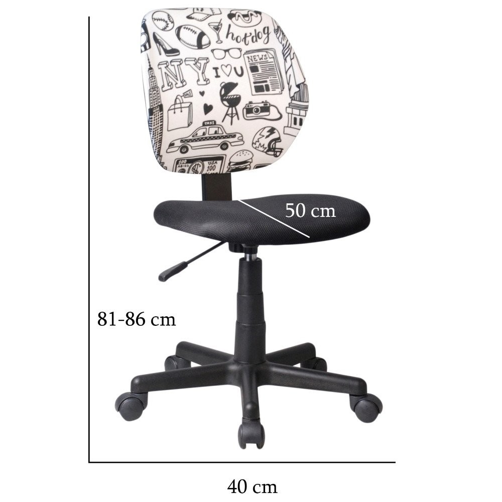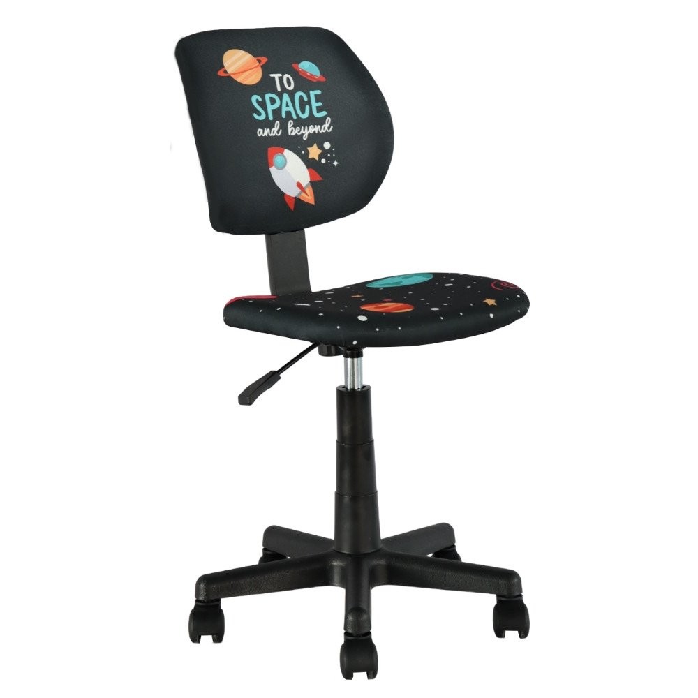 - Otroški pisarniški stol z črnim sediščem in naslonom z potiskom