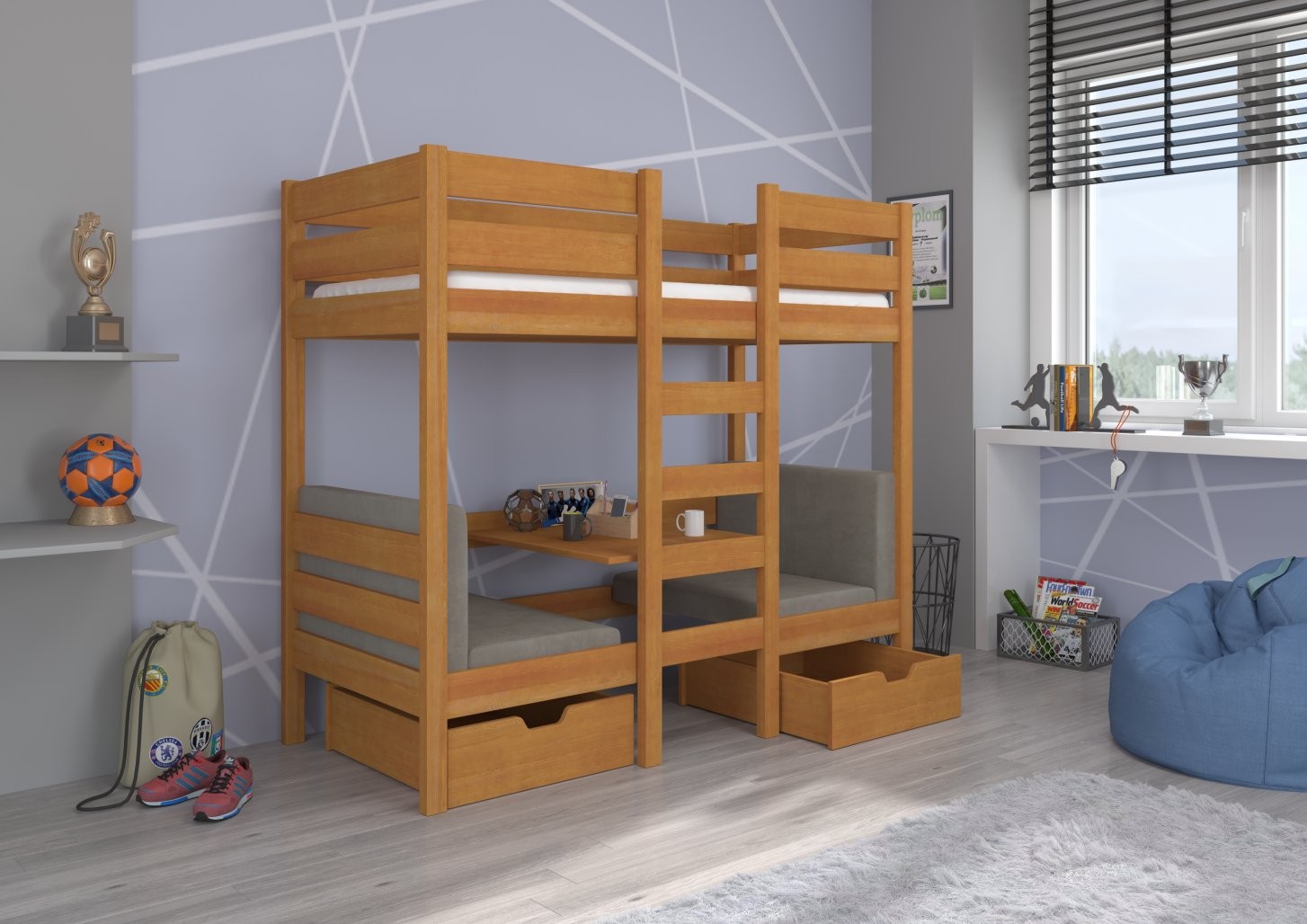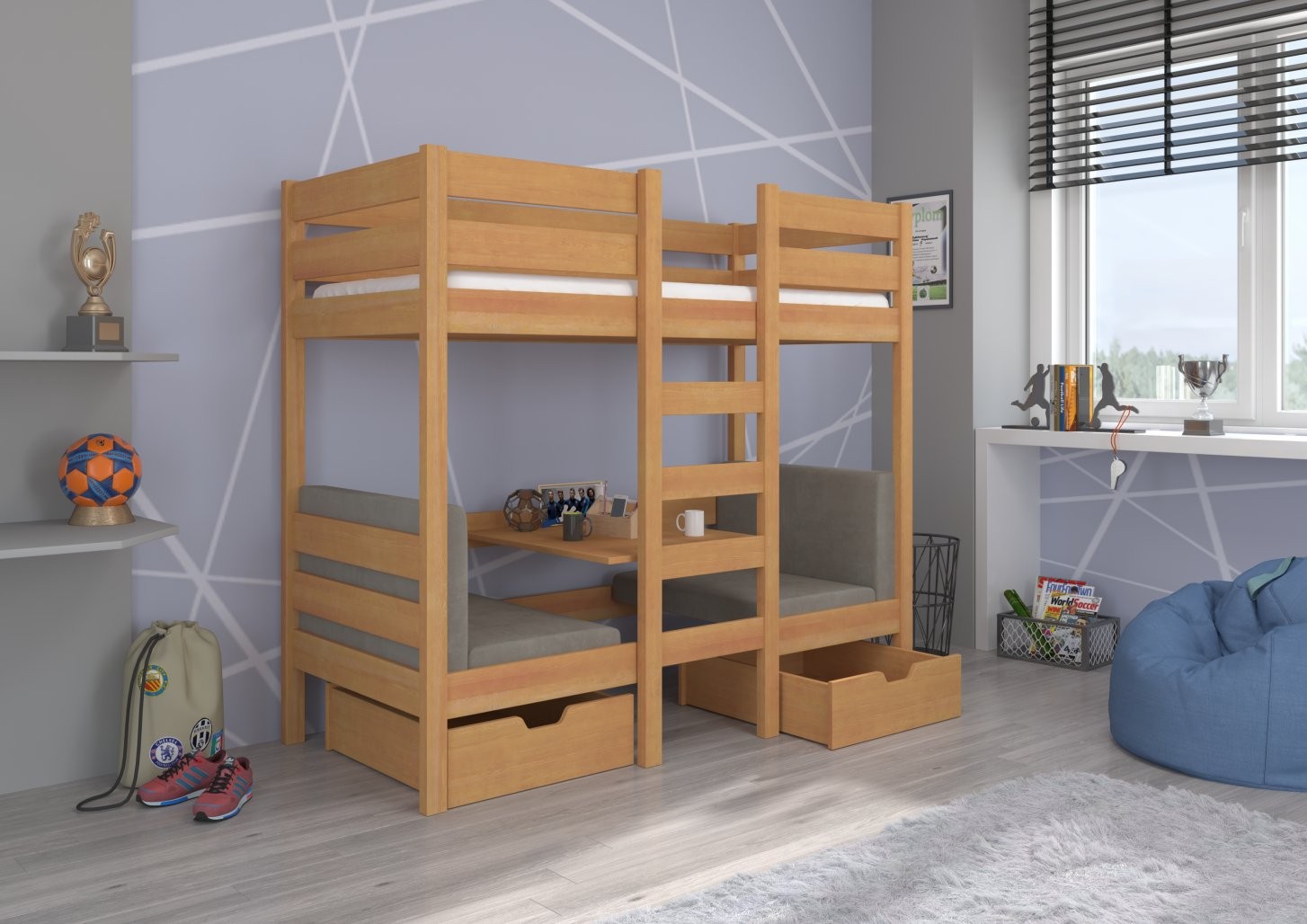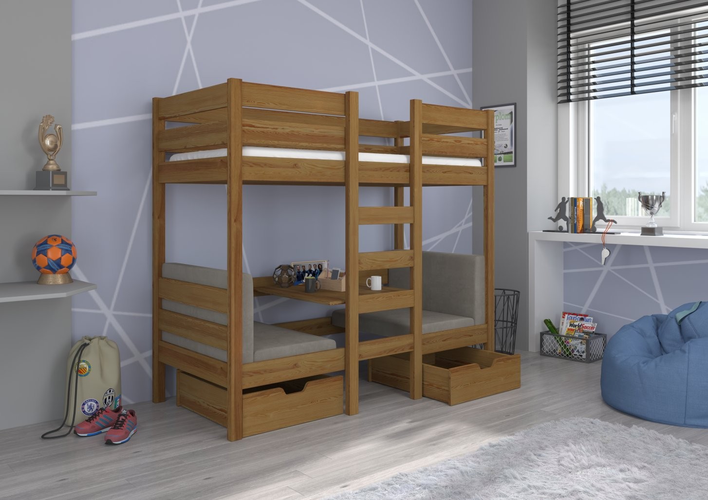 Otroški pograd BART z mizico in sedišči 200x90 je praktična in inovativna rešitev za majhne otroške sobe. Zasnovan je za maksimalno izrabo prostora in ponuja edinstveno kombinacijo spalnega in igralnega prostora.