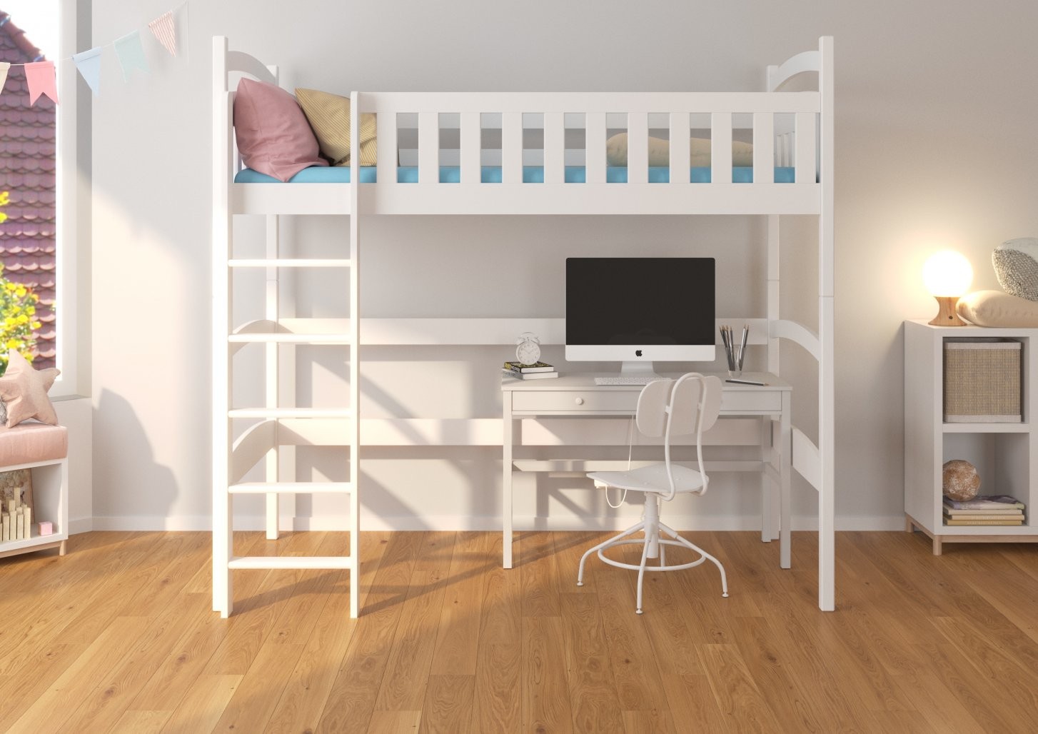 Otroški pograd z galerijo MIAGO 200x90 je odlična izbira za starše, ki iščejo praktično in estetsko rešitev za majhne otroške sobe. Zgornji del postelje nudi udoben prostor za spanje, spodnji del pa lahko kreativno izkoristite kot kotiček za igro, učenje ali shranjevanje.