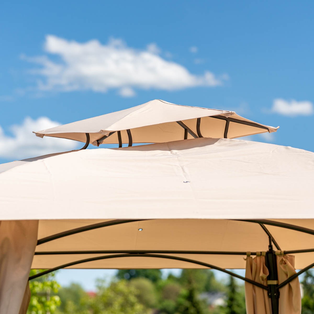 Velik in sodoben vrtni pavilijon GAVI 2 je primeren za vrt in za vsakogar, ki si želi prostora za druženje. V tem pavilijonu boste zaščiteni tudi pred padavinami, saj vsebuje zavese, ki lahko pokrijejo celoten pavilijon. Za varno druženje pa poskrbi kovinsko ogrodje. Na voljo je v bež barvi, ki se bo odlično podala k vašemu vrtu.