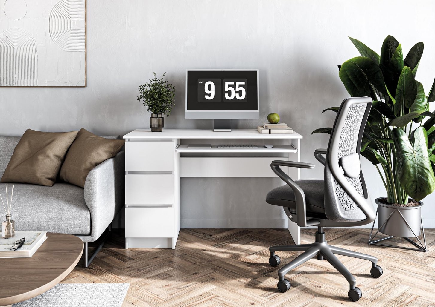 Izdelana je iz kakovostne laminirane iverne plošče, kar zagotavlja dolgo obstojnost, odpornost proti praskam in enostavno vzdrževanje. S kompaktnimi dimenzijami 120/50/77 cm je zasnovana za optimalno izkoriščanje prostora. Ker gre za konfigurabilen izdelek, je Pisalna miza Umral na voljo v več barvnih možnostih, in sicer: Bela, Hrast artisan in Grafit/Hrast artisan.