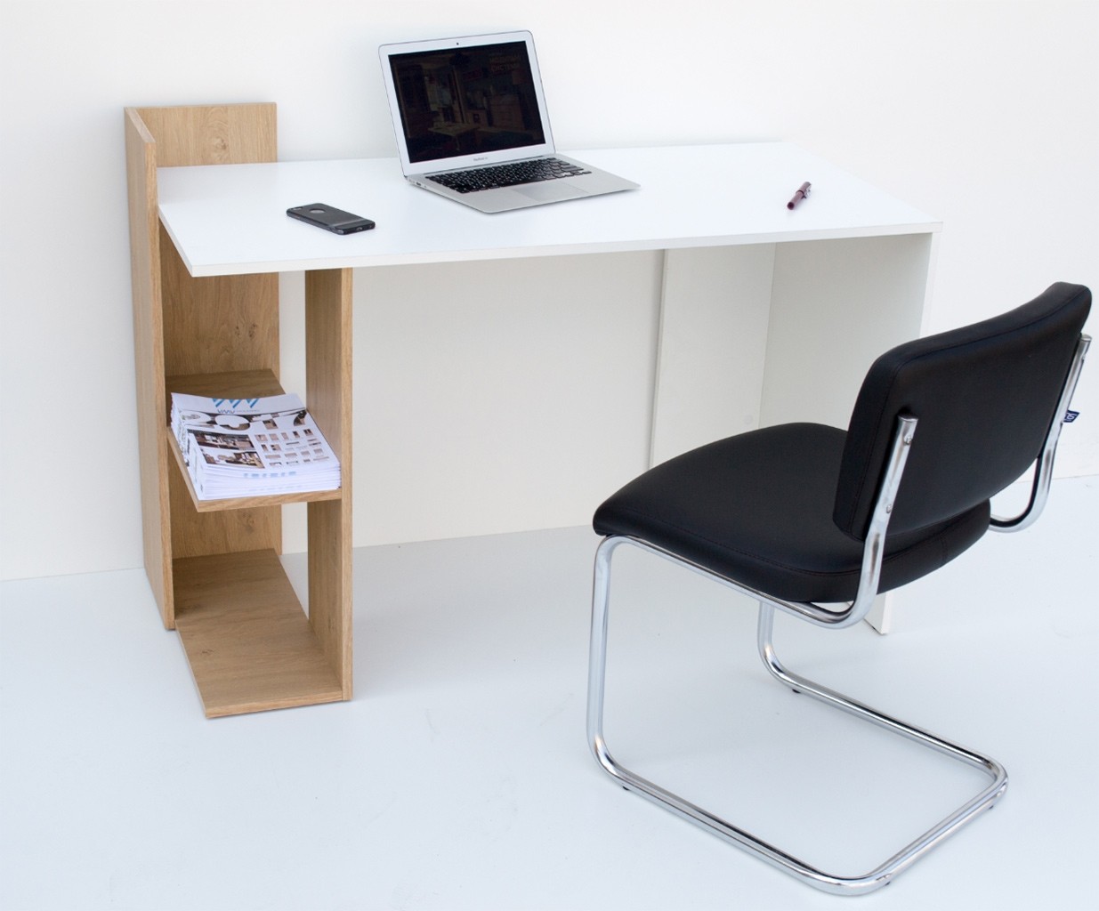 Pisalna miza ALMOST je na voljo v minimalistični kombinaciji bele barve in hrasta, ki se enostavno kombinira z ostalimi barvami, zato se odlično poda v vsako mladinsko in otroško sobo. Na levi strani ima odprte police, na katere lahko položite razne papirje in pisala in s tem ohranite čisto in prosto delovno površino.