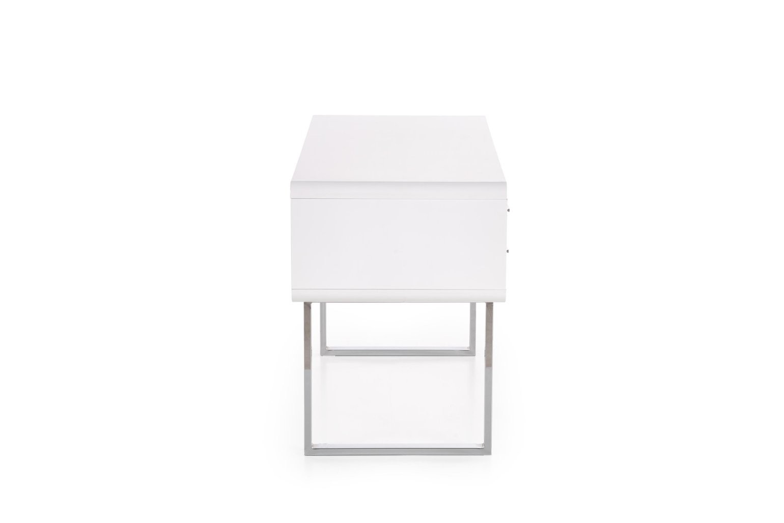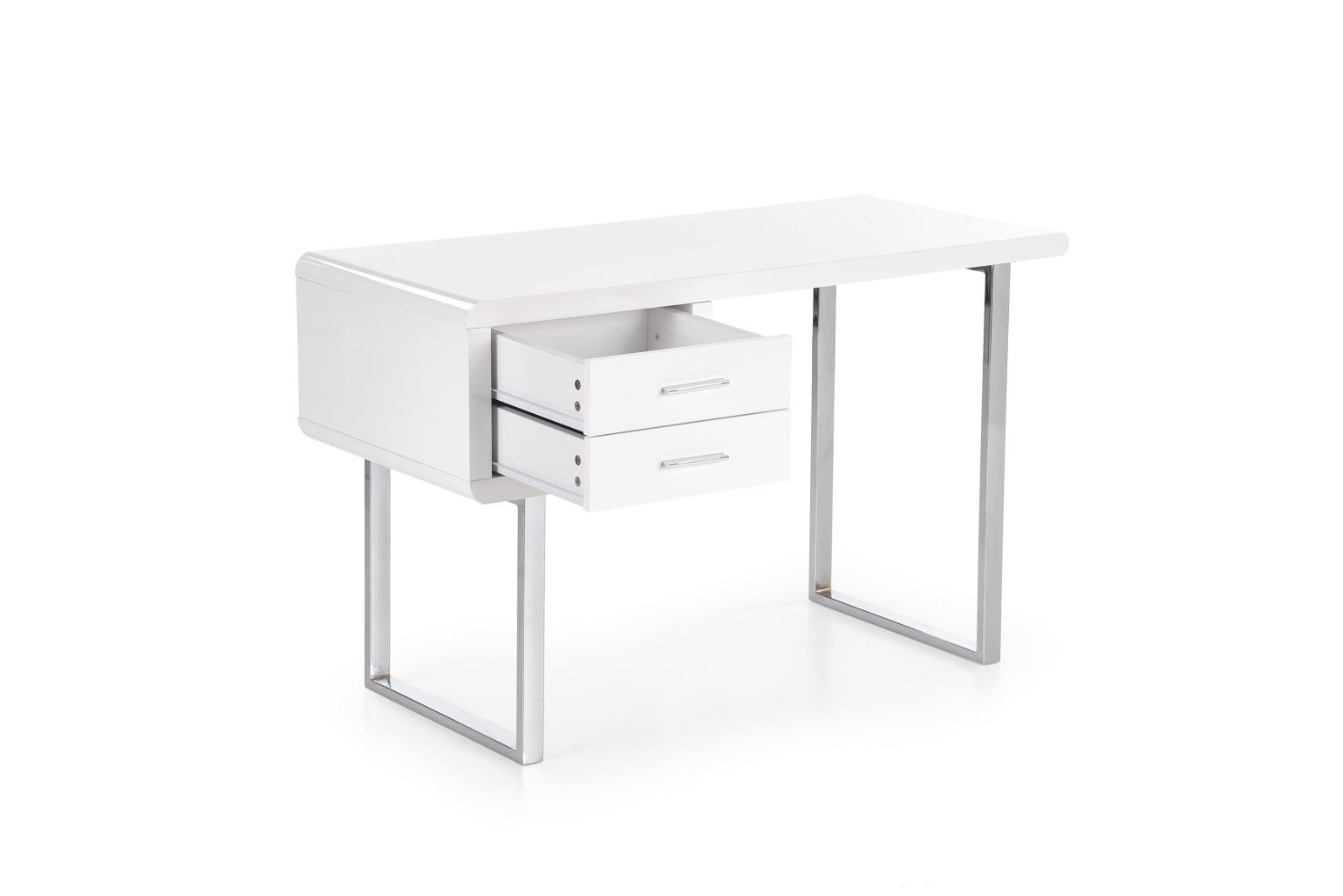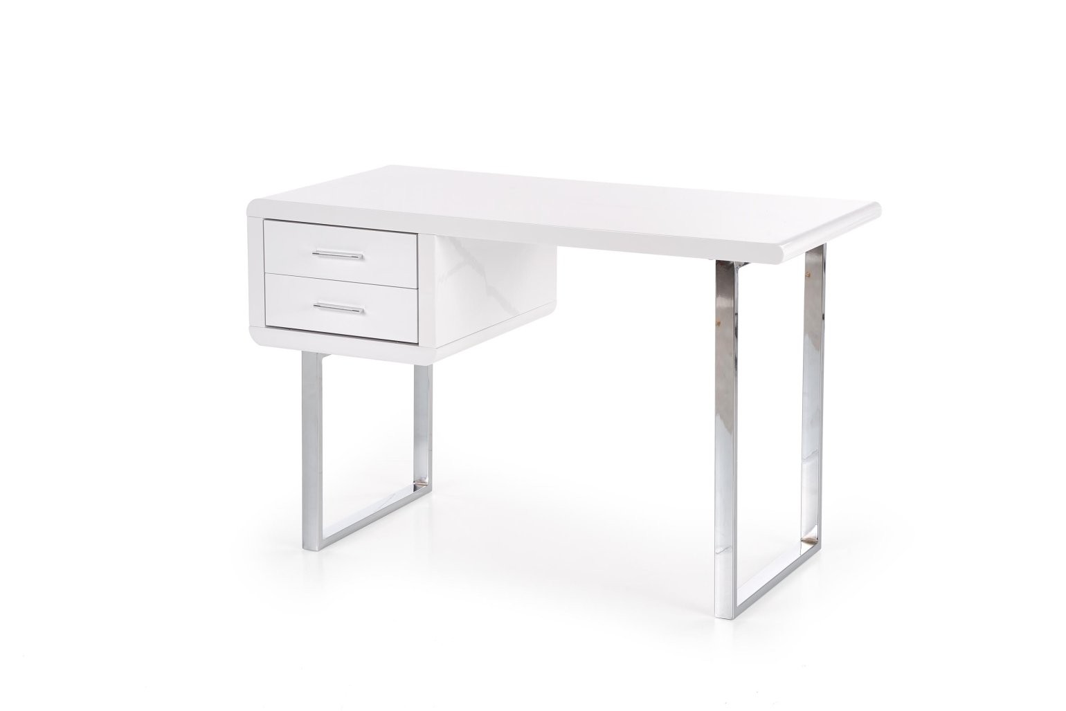 Pisalna miza Haren z belo lakirano površino v visokem sijaju in kromiranimi nogami prinaša eleganco in prestiž. Popolna izbira za ljubitelje prefinjenega in sodobnega videza.