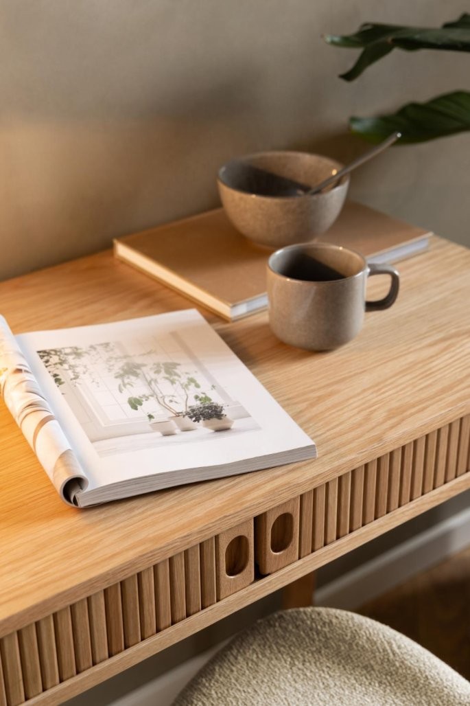 Moderna in elegantna pisalna miza IKARUS je idealen dodatek za pisarno ali domačo uporabo, saj se zaradi svojega preprostega videza v barvi hrasta odlično poda v vsak prostor. Miza vsebuje tudi shranjevalni prostor z drsnimi vrati, ki omogoča urejen in čist delovni prostor.
