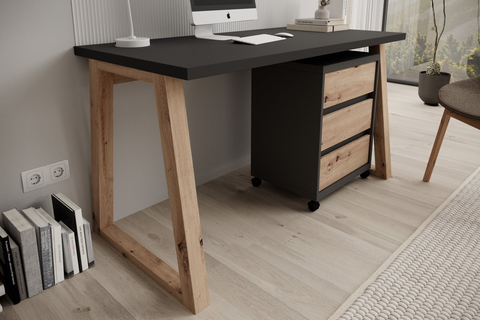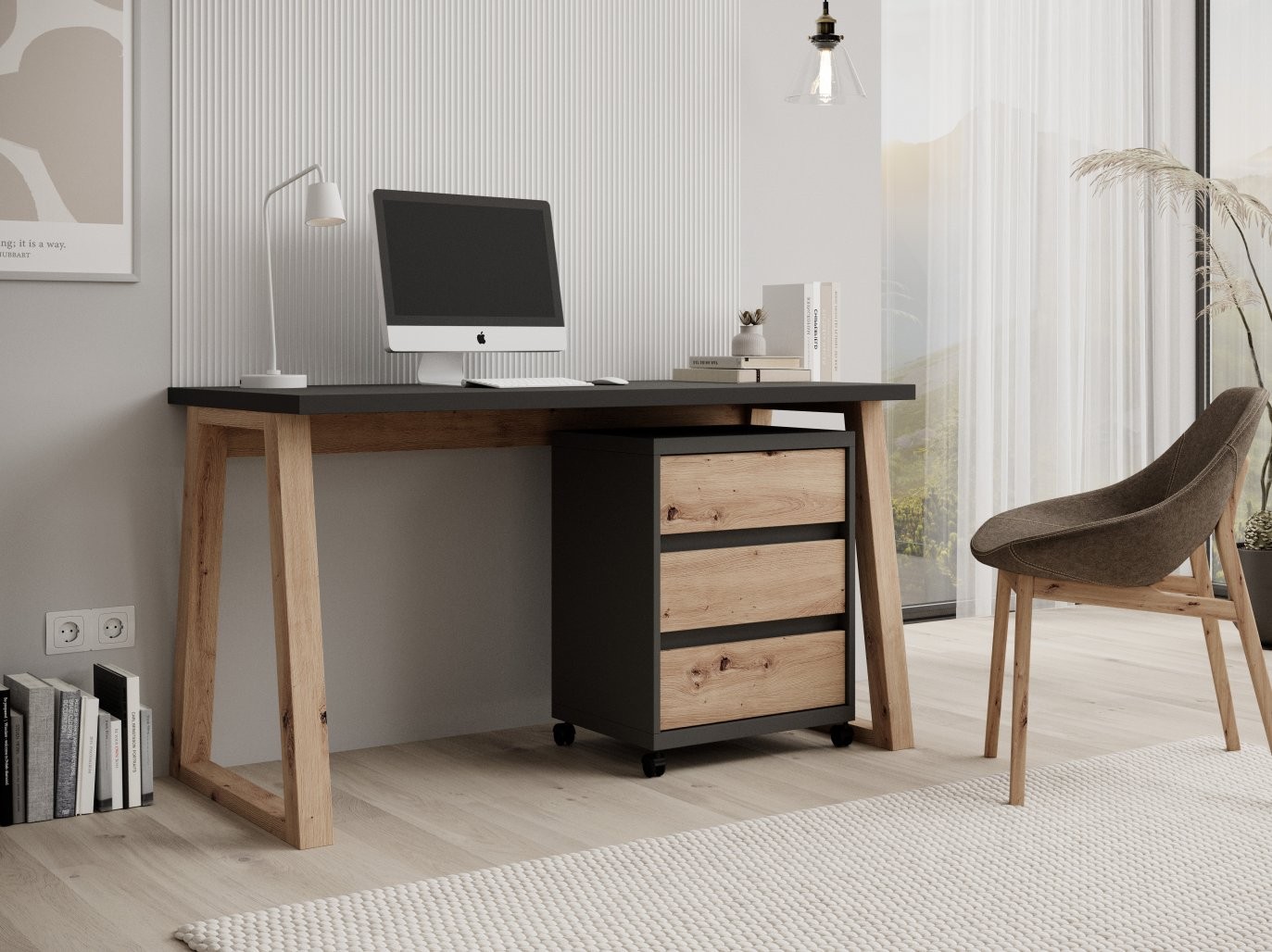 Miza vključuje premičen predalnik, ki omogoča prilagodljivo postavitev glede na vaše potrebe. Zaradi različnih barvnih kombinacij in širine je izdelek prilagodljiv in primeren za različne stile notranje opreme.