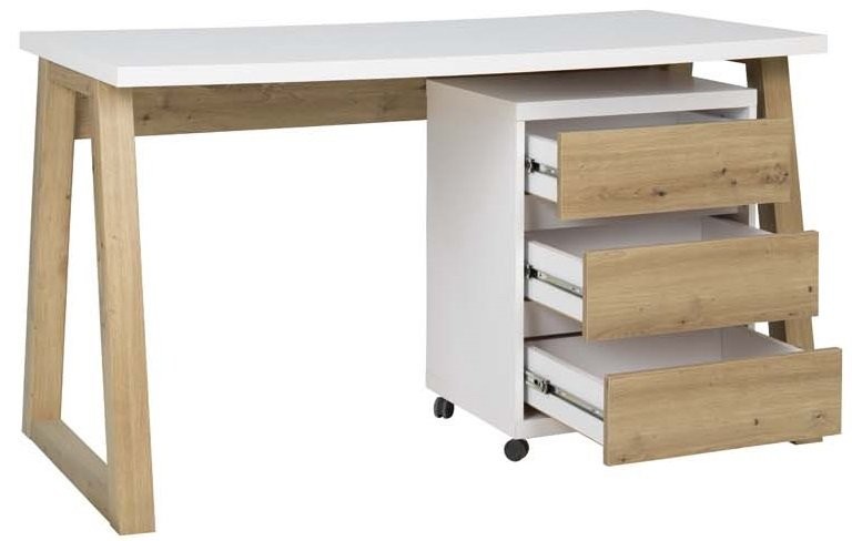 Pisalna miza Iwo I s premičnim predalnikom je sodobna in funkcionalna rešitev za vsak dom, pisarno ali mladinsko sobo. Zasnovana je za maksimalno udobje in organizacijo vašega delovnega prostora.