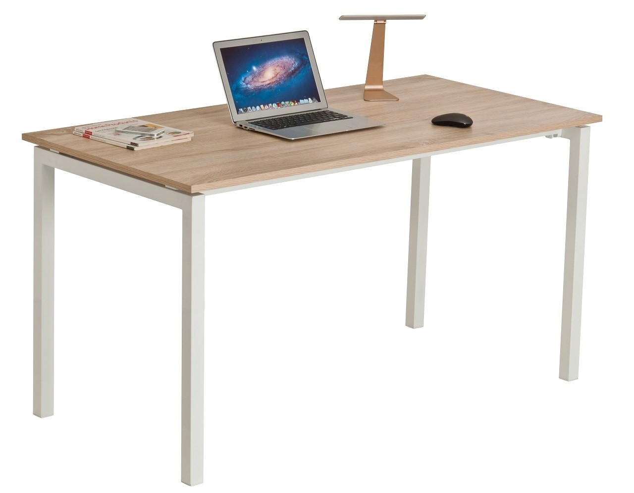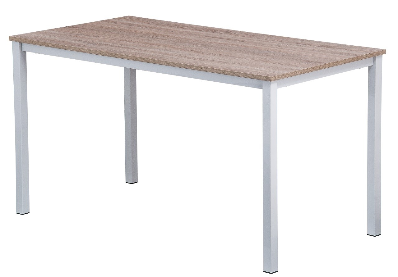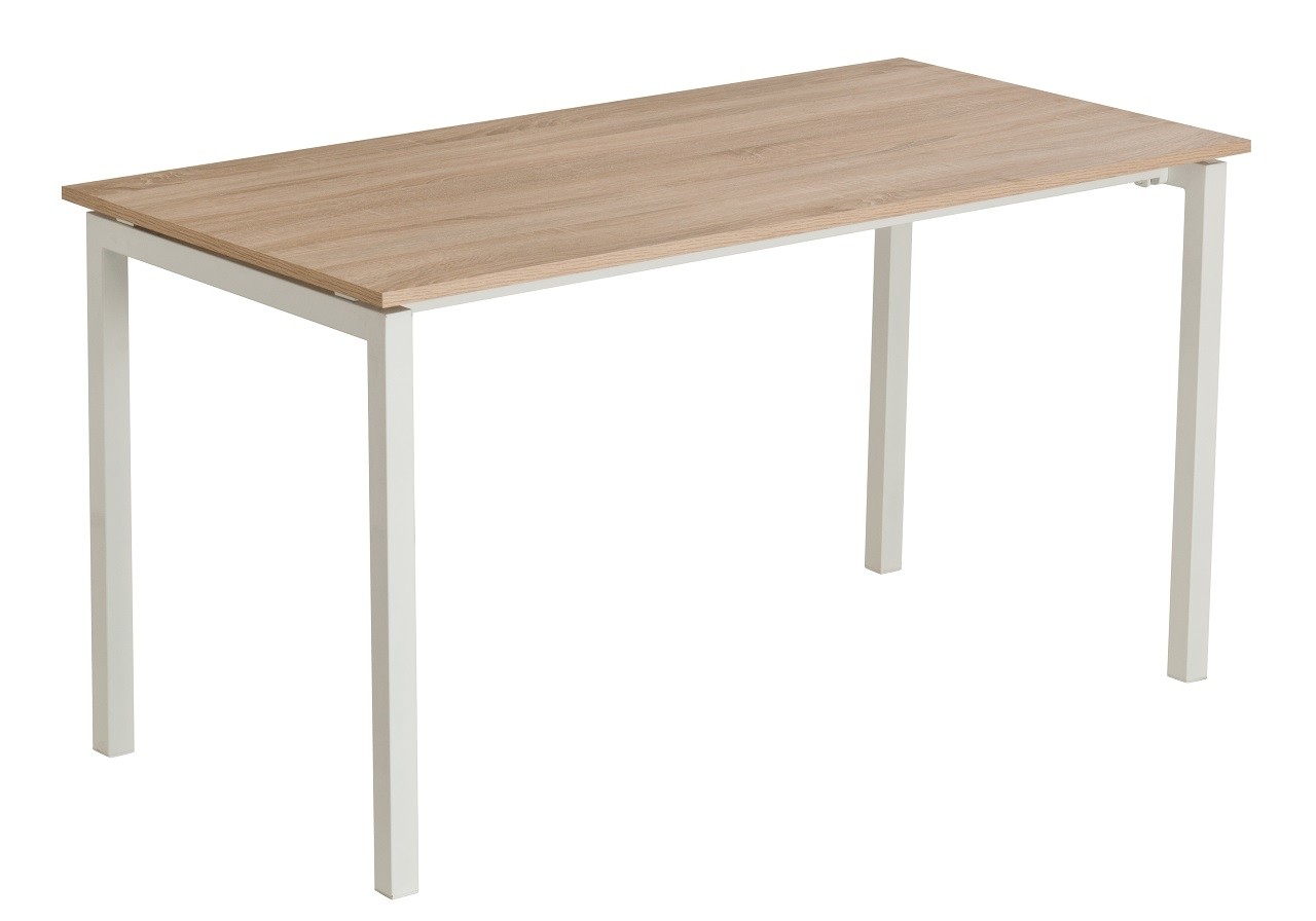 Stilsko elegantna pisalna miza KAYA vam omogoča veliko delovne površine. Minimalističen stil bo poskrbel za odlično ujemanje s preostalim pohištvom v prostoru. Odlično se obnese tako v pisarni kot tudi v mladinski sobi. Plošča mize debeline 1,8 cm je narejena iz MDF materiala v barvi svetlejšega hrasta. Podnožje debeline 1,2 cm je moderno kovinsko v svetlo bež barvi.