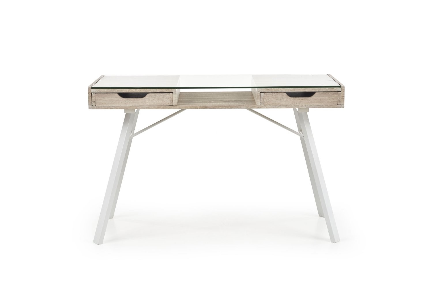 Pisalna miza Koren s površino iz laminiranega MDF v sonoma hrastovem odtenku in belim kovinskim okvirjem je idealna za skandinavske interierje. Dodaja toplino in funkcionalnost prostoru.