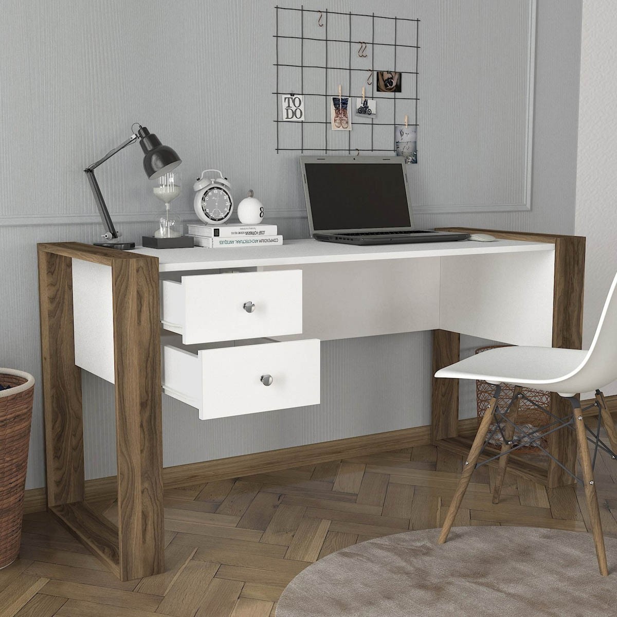 Pisalna miza LORDE je zasnovana z mislijo na funkcionalnost in minimalizem. Velika delovna površina zagotavlja dovolj prostora za udobno delo ali pisanje, brez omejitev. Dva manjša predala v mizi pa vam omogočata enostaven dostop do pisarniških pripomočkov in dokumentov, ki jih pogosto uporabljate.