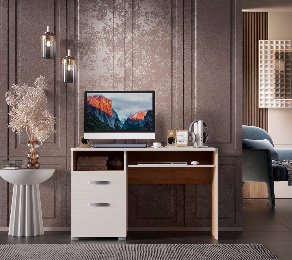 Pisalna miza MALTA JE na voljo v kombinaciji barve sibirskega macesna in oreha, ki vam boste poživela prostor in ga naredila modernega. Pisalna miza nudi predal, vratca in izvlečno polico.