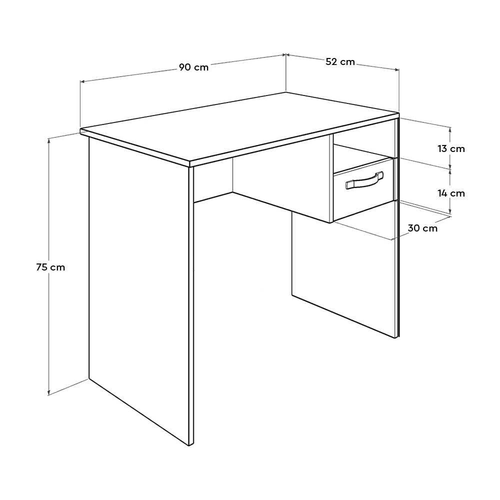 Preprosta stilska miza v barvi hrasta je primerna za računalniško mizo ali za otroško mizo, saj se jo lahko uporablja za učenje. Prednosti te mize so velika delovna površina, predal za shranjevanje učnih potrebščin in pa prostor za odlaganje zvezkov ali prenosnega računalnika, tako da imate stvari vedno pri roki. Miza ima kovinski ročaj za odpiranje predala in majhen lesen prostor za odlaganje.