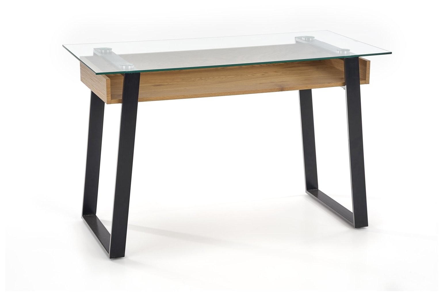 Pisalna miza Moria v slogu z zlato hrastovo površino in črnim kovinskim okvirjem prinaša industrijski pridih. Praktična in elegantna rešitev za sodobne domače pisarne ali delovne prostore.