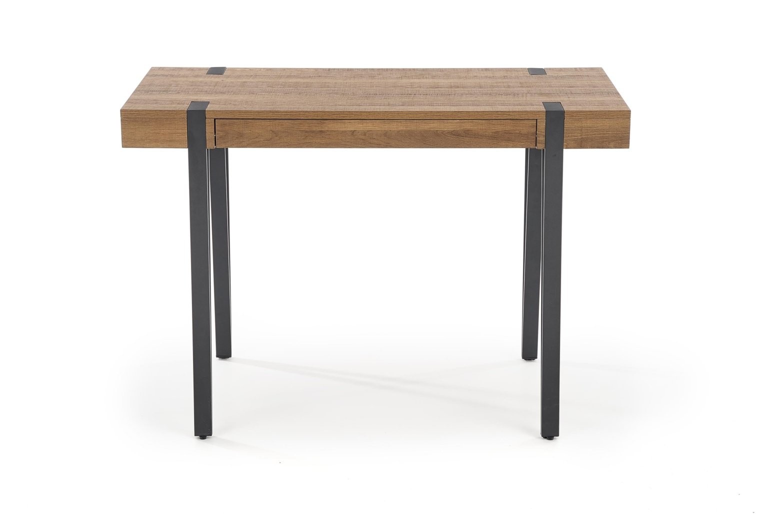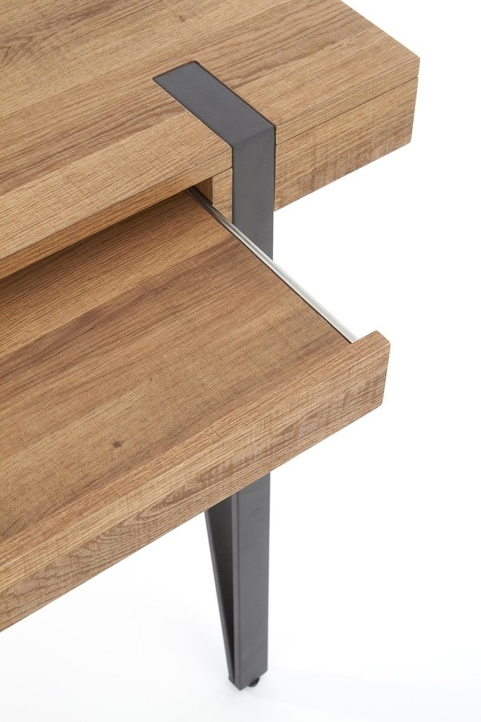 Pisalna miza Nira v modernem slogu s črnim kovinskim okvirjem in površino iz laminiranega MDF v orehovem odtenku je stilska izbira za sodobno domačo ali poslovno pisarno.