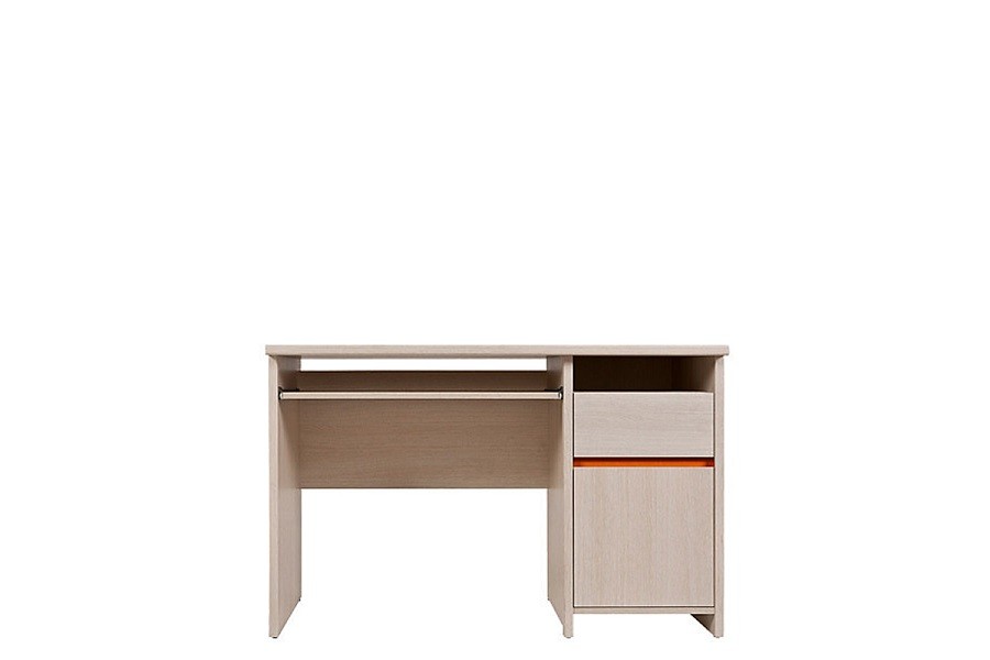 Pisalna miza NUMLOCK je na voljo v dveh barvnih kombinacijah. Sonoma hrast je v kombinaciji z zeleno in oranžno barvo. Pisalna miza je narejena iz oplemenitene iverne plošče.