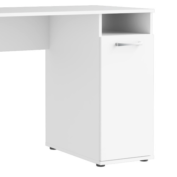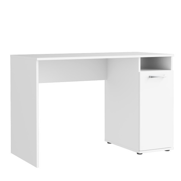 Klasična pisalna miza OKLIN v beli barvi je preprosta pisalna miza, ki ne zavzame veliko prostora. Ima priročno odprto polico ter omarico za shranjevanje, kamor lahko pospravite šolske potrebščine, učbenike, delovne zvezke in ostale malenkosti, ter s tem ohranite prosto in pospravljeno delovno površino.