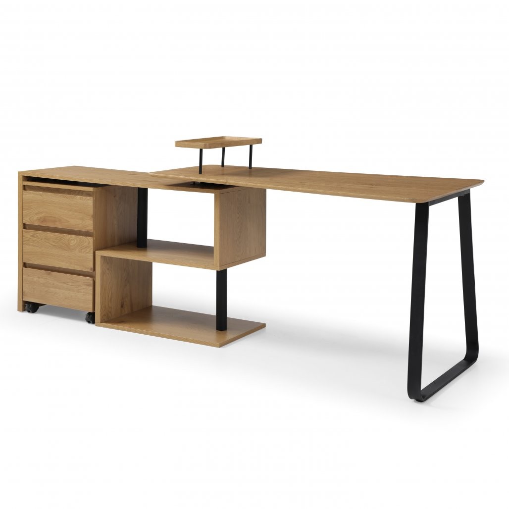 - Sodobna pisalna miza, ki se lahko iz običajne pravokotne oblike raztegne v kotno mizo v obliki črke L