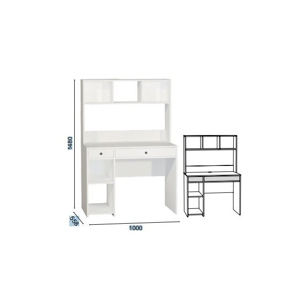 Maksimalna obremenitev predalov je 3 kg. Miza je na voljo v nevtralni beli barvi, ki se odlično kombinira z vsemi drugimi barvami in zato odlično izgleda v vsaki sobi.