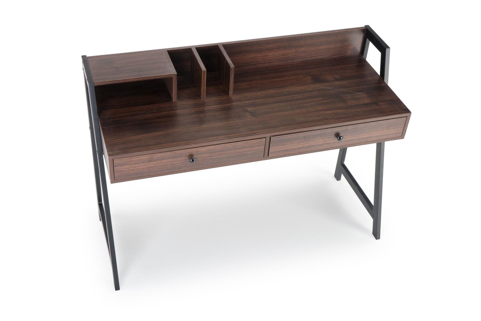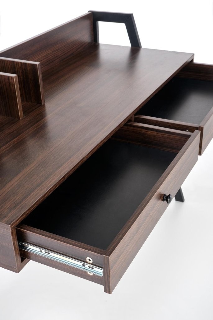 Pisalna miza Ulan z orehovo površino in črnim kovinskim okvirjem je zasnovana za sodoben slog. Idealen kos za domačo ali poslovno uporabo, ki združuje stil in funkcionalnost.