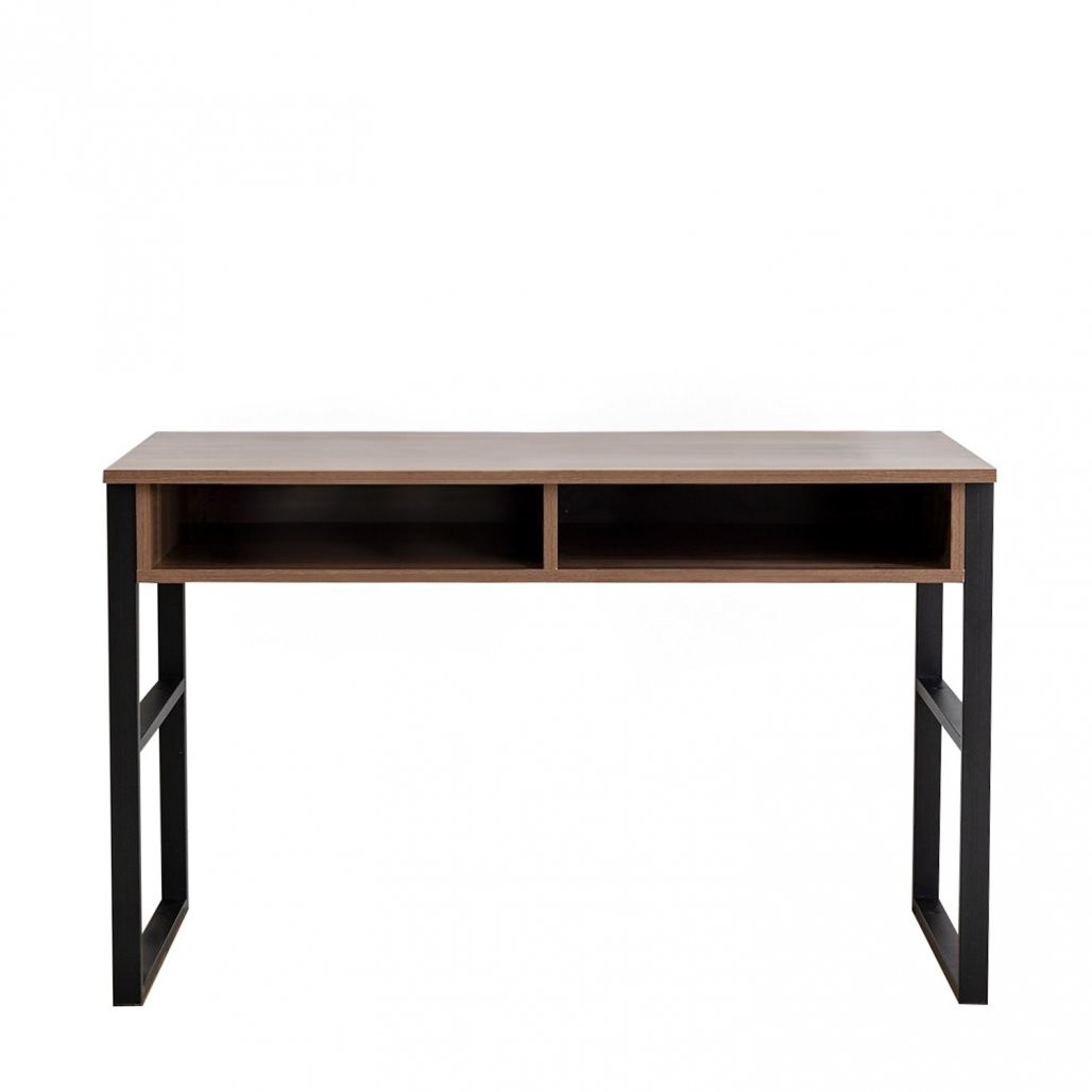 Naša študijska miza v čudoviti barvi oreha brez težav doda pridih prefinjenosti in elegance vsakemu prostoru. Zaradi sodobne zasnove in industrijskega koncepta se odlično prilega tako sodobnim kot tradicionalnim notranjim prostorom. Ne glede na to, ali ste študent, strokovnjak ali ustvarjalni posameznik, je ta pisalna miza zasnovana tako, da navdihuje in povečuje vašo produktivnost.