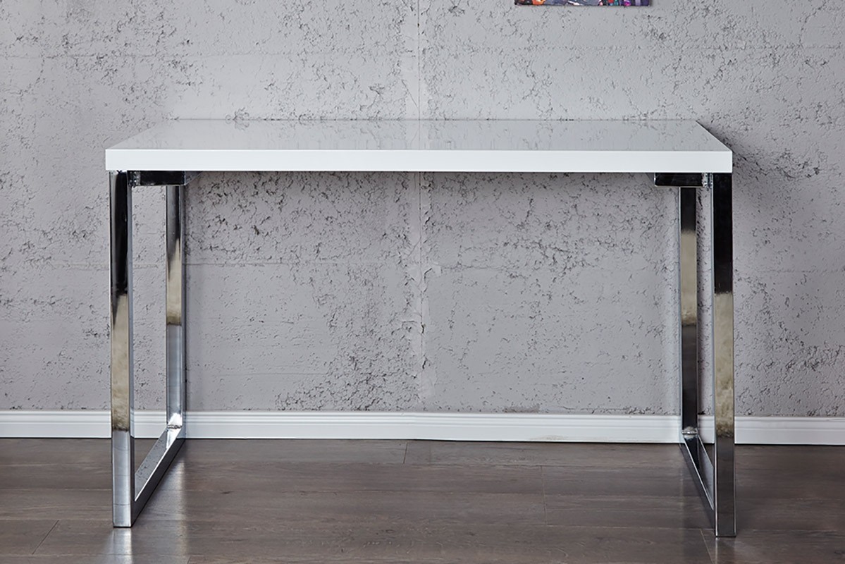 Pisarniška miza PINTA je na voljo v beli barvi v visokem sijaju, ki v kombinaciji s kromiranim delom vašemu domu doda prefinjenost in eleganco. Visoki sijaj v prostor prinese tudi več svetlobe, saj se odbija od pohištva. Moderna in urejena delovna površina pozitivno vpliva na vaše delo, saj boste bolj motivirani za delo in produktivni.