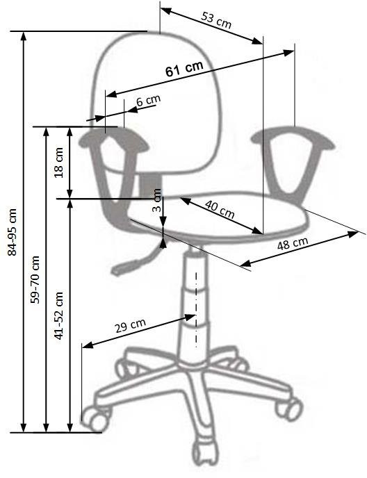 Pisarniški stol Bolar v sivi ali roza barvi z enostavnim dvižnim mehanizmom. Udoben model za mladinske sobe z višino sedala 41–52 cm.