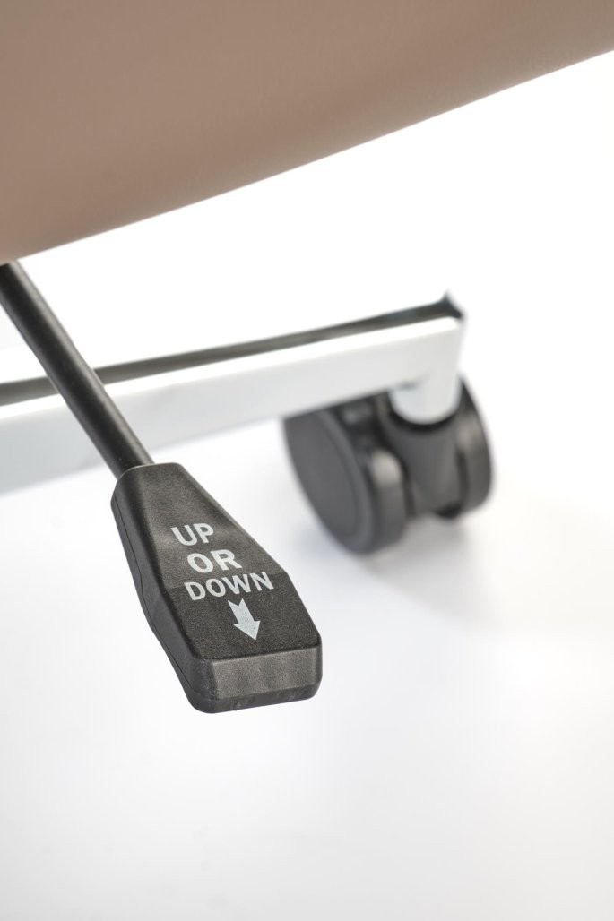 Pisarniški stol Brerlin s kapučino eko usnjem in MULTIBLOCK funkcijo. Primeren za klasične in moderne pisarniške prostore, z aluminijasto osnovo in fiksnimi nasloni za roke.