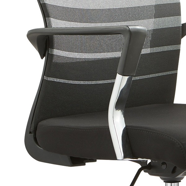 PISARNIŠKI STOL DANILO je modern pisarniški stol, ki ima sedišče oblazinjeno s kvalitetno tkanino, ki izgleda odlično v vsaki pisarni. Naslon je prevlečen z mrežo, ki stolu daje zračnost ter moderen videz s kombinacijo sive in črne barve. Visokokakovostni materiali iz katerih je narejen ter nastavljivo naslanjalo za glavo bodo poskrbeli za to, da vas nikoli več ne bo bolel hrbet med sedenjem.