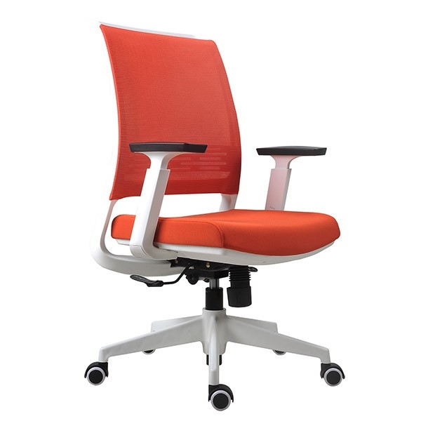 PISARNIŠKI STOL DEV je preprost pisarniški stol oblazinjen s kvalitetno mrežno tkanino. Moderen videz mu nudi oranžna barva, ki bo vašo pisarno naredila bolj zanimivo in energično. Stol je obogaten z večpozicijskim nagibnim mehanizmom, ter je vrtljiv in nastavljiv po višini tako da boste sigurno našli pozicijo za delo katera vam najbolj ustreza!