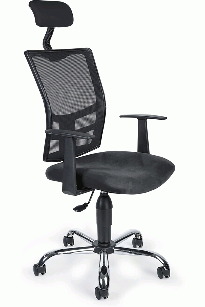 Ergonomičen pisarniški stol v črni barvi, ki je oblazinjen s kvalitetno tkanino vam bo nudil obilo udobja saj ima tudi funkcijo vrtenja in nastavka po višini, tako da je primeren za vsakogar. Ima udobno sedišče napolnjeno s peno zato bo vaš čas na stolu minil brez bolečin. Stol ima pritrjene naslone za roke, podnožje je kromirano in ima črna vrtljiva kolesca. Maksimalna obremenitev stola je 100 kg.