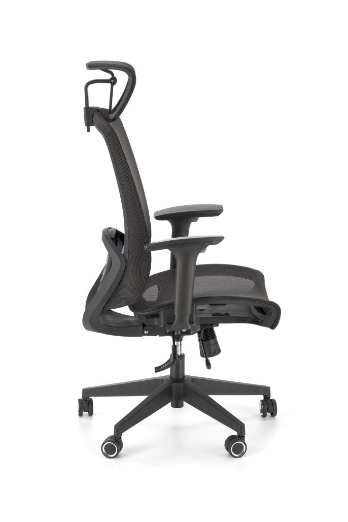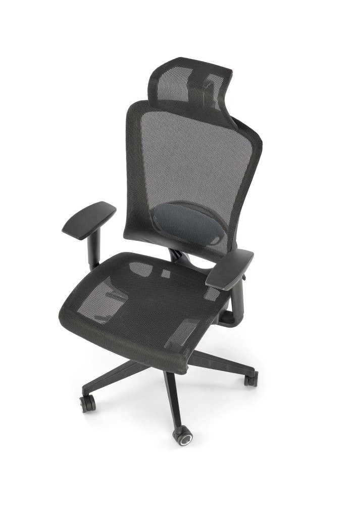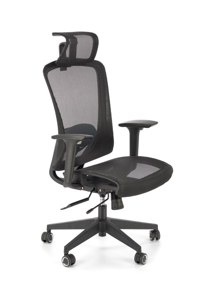 Pisarniški stol Halon z mrežasto tkanino, sinhroniziranim mehanizmom in nastavljivimi elementi zagotavlja udobje in ergonomsko podporo. Črna barva prinaša eleganco v vsak prostor.