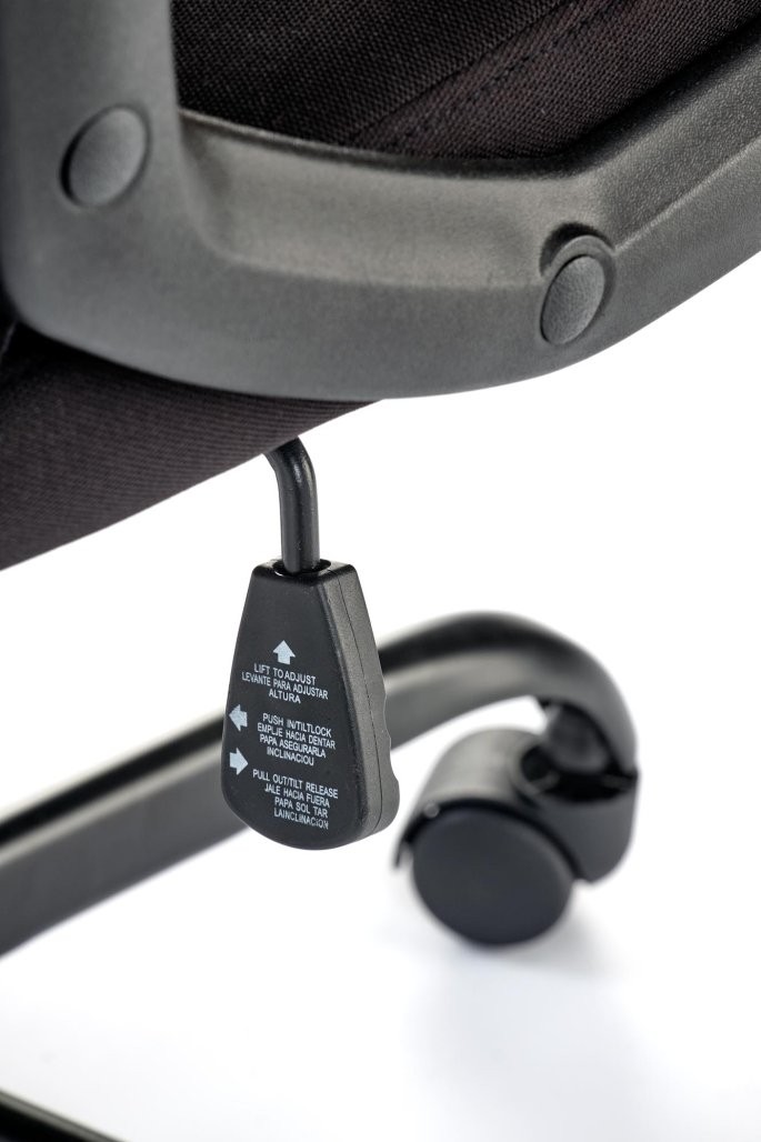 Pisarniški stol Irilon z nagibnim mehanizmom omogoča udobno sedenje in podporo v različnih položajih. Na voljo v kombinaciji črne, sive in rdeče barve s trpežnim tekstilnim oblazinjenjem.