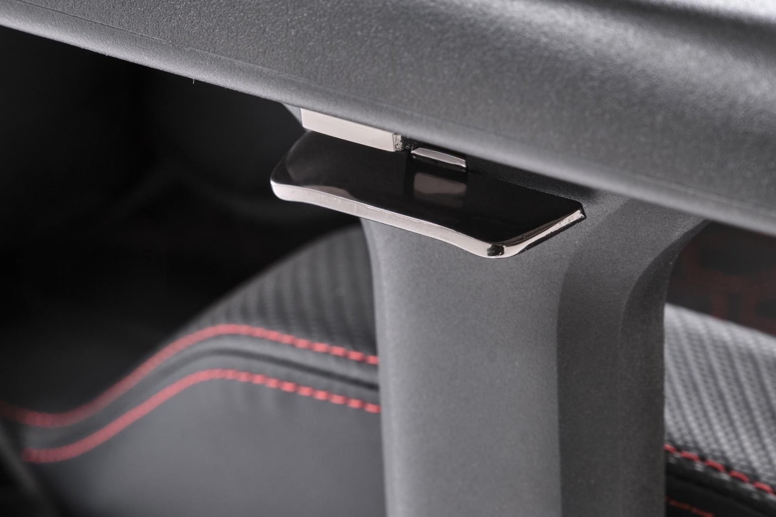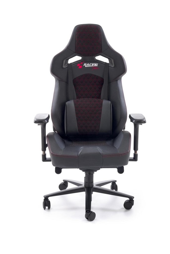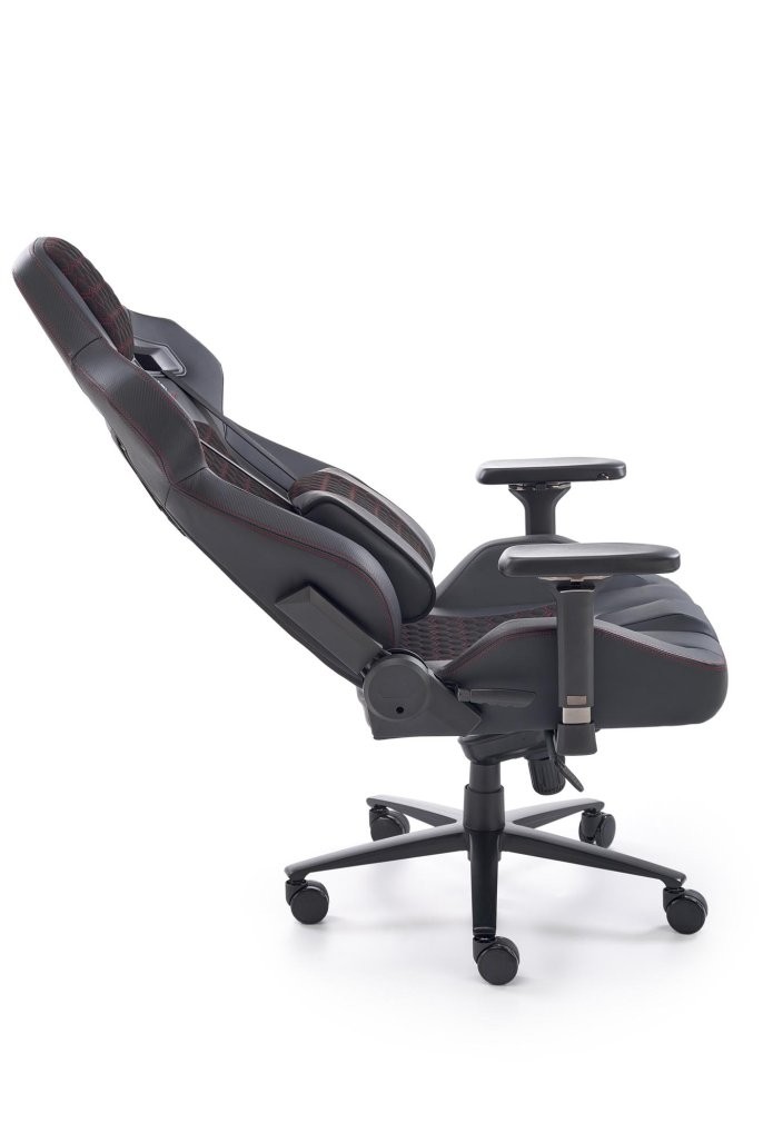 Pisarniški stol Keran s funkcijo MULTIBLOCK, nastavljivimi nasloni za roke in aluminijasto osnovo. Oblazinjen v črnem eko usnju, idealen za igralne ali mladinske sobe.