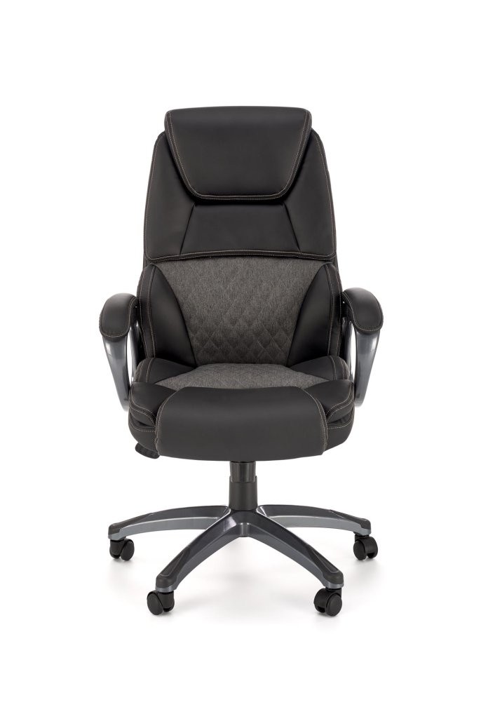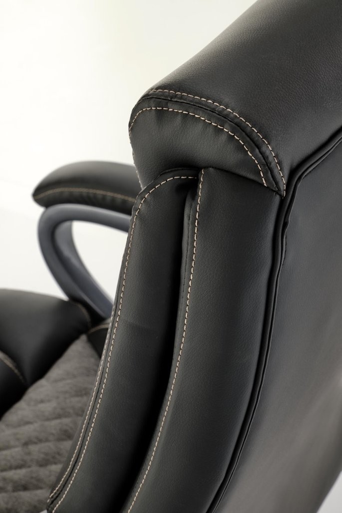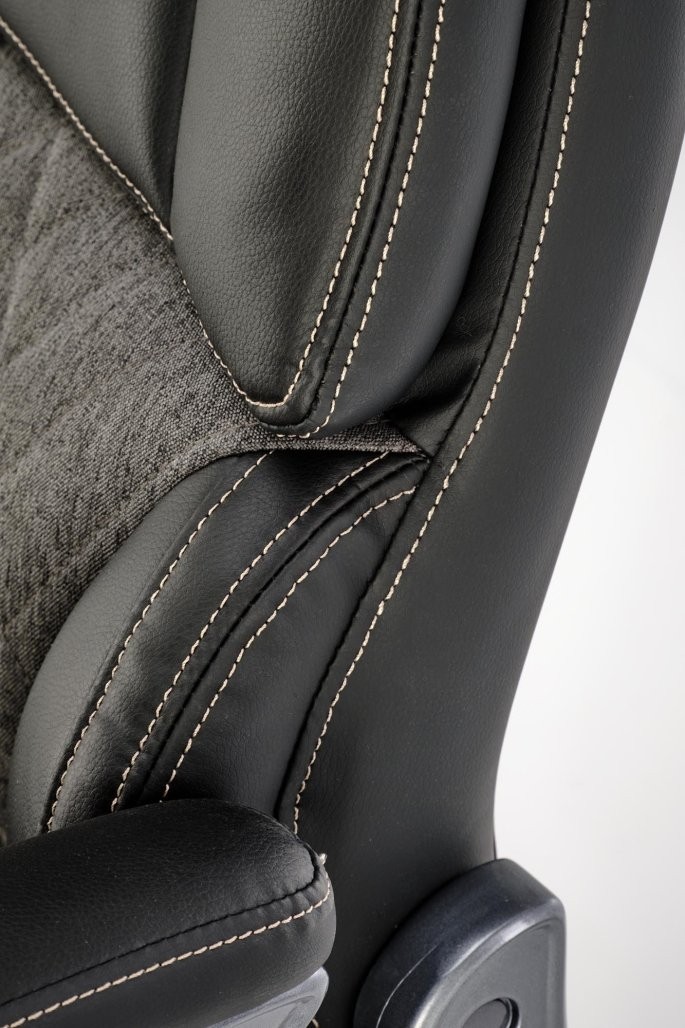 Pisarniški stol Melan z možnostjo nagiba in kombinacijo umetnega usnja ter tkanine v črno-sivi barvi. Kot nalašč za moderno pisarno.