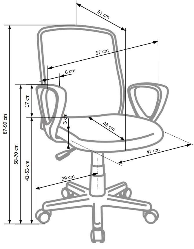 - Materiali sedeža in naslonjala: mreža, mrežasta tkanina