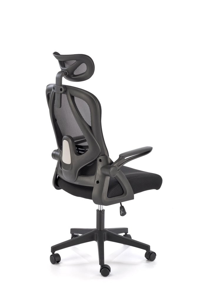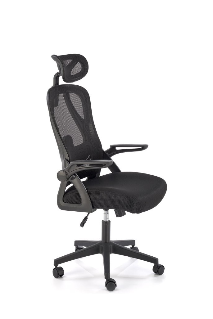 Pisarniški stol Meran z mrežastim oblazinjenjem in nastavljivim vzglavnikom. Enostavna funkcija nagiba za udobje med delom v pisarni ali sobi za najstnike.