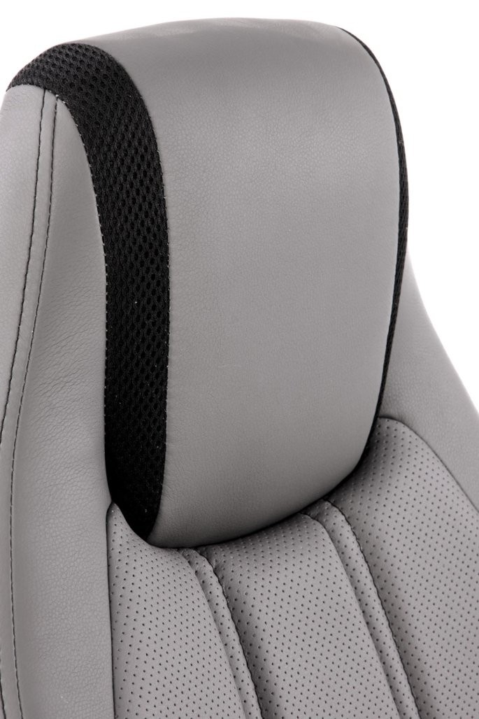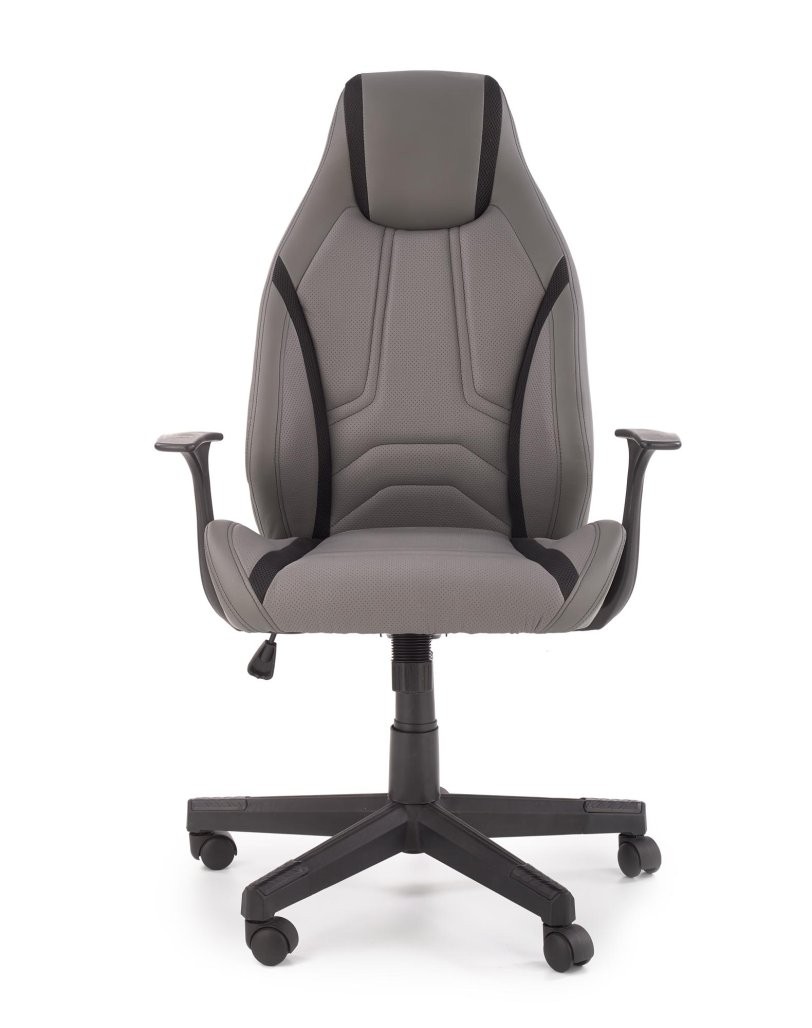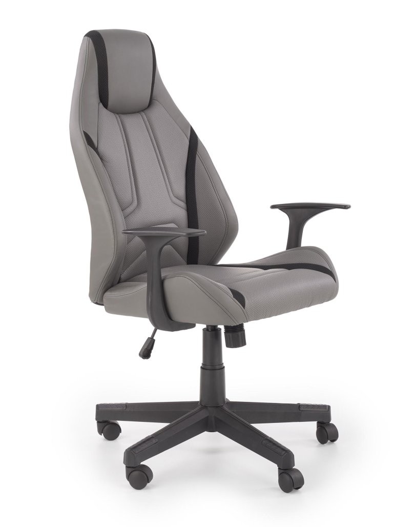 Pisarniški stol Meren v kombinaciji eko usnja in perforiranega blaga. Siva in črna barva, z nagibnim mehanizmom in nastavljivimi nasloni za udobno delo.