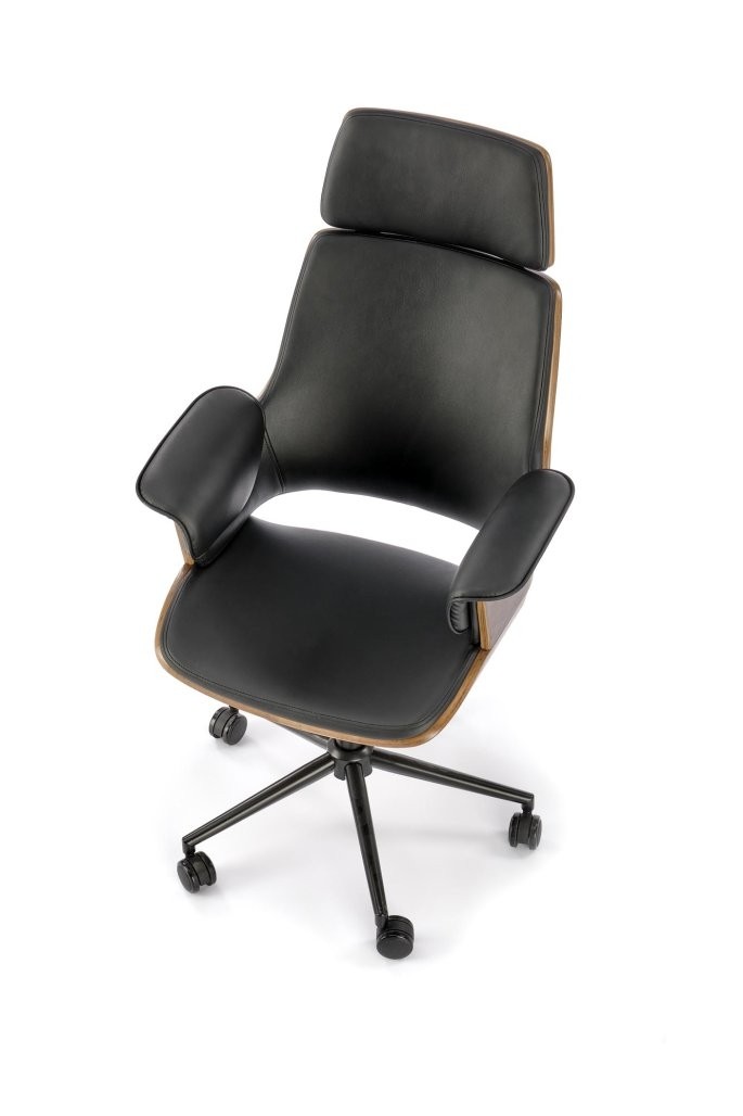 Pisarniški stol Niren s TILT mehanizmom in črnim ekousnjem v kombinaciji z orehom je elegantna izbira za klasično pisarno. Pisarniški stol je prilagojen za udobno sedenje.