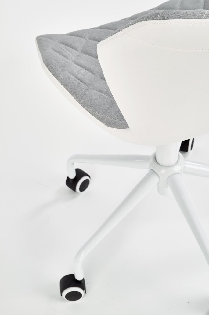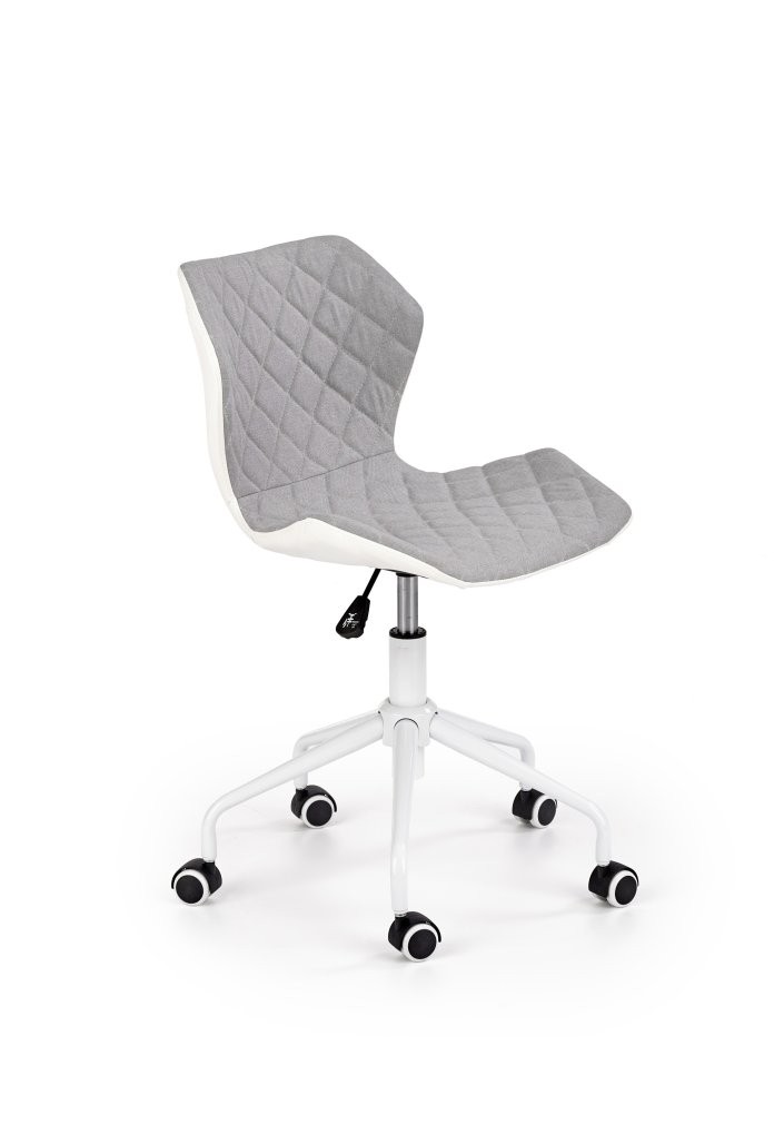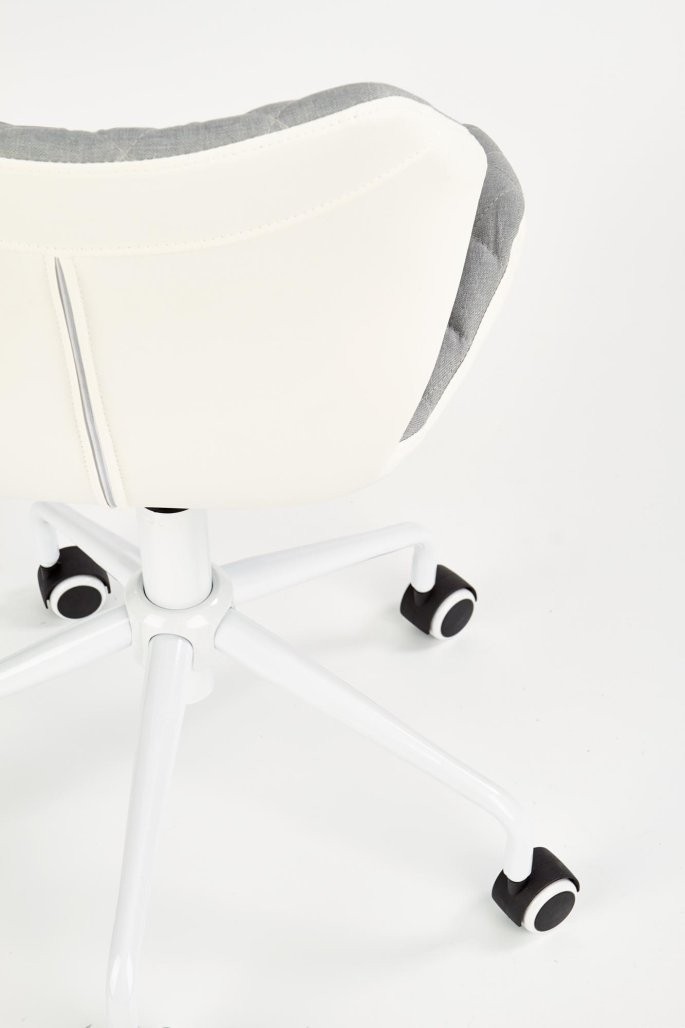 Pisarniški stol Ostar v svetlo sivi ali svetlo roza barvi z enostavnim dvižnim sistemom. Oblazinjen je v kombinaciji tkanine in eko usnja, primeren za mladinske sobe.