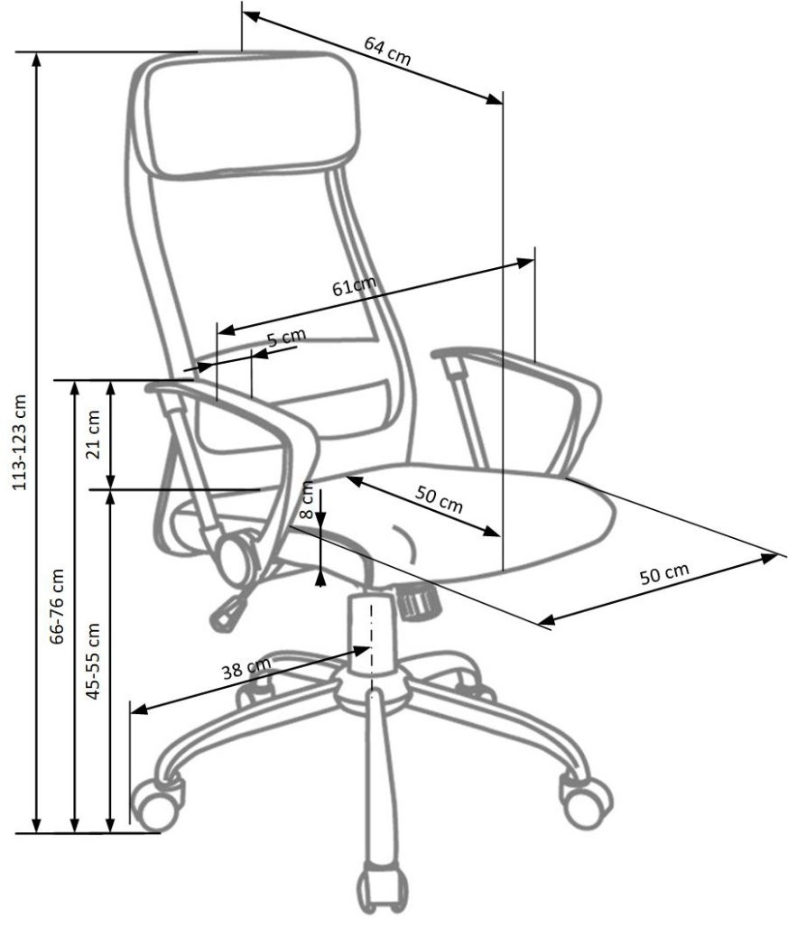 - Materiali sedeža in naslonjala: tkanina, mreža