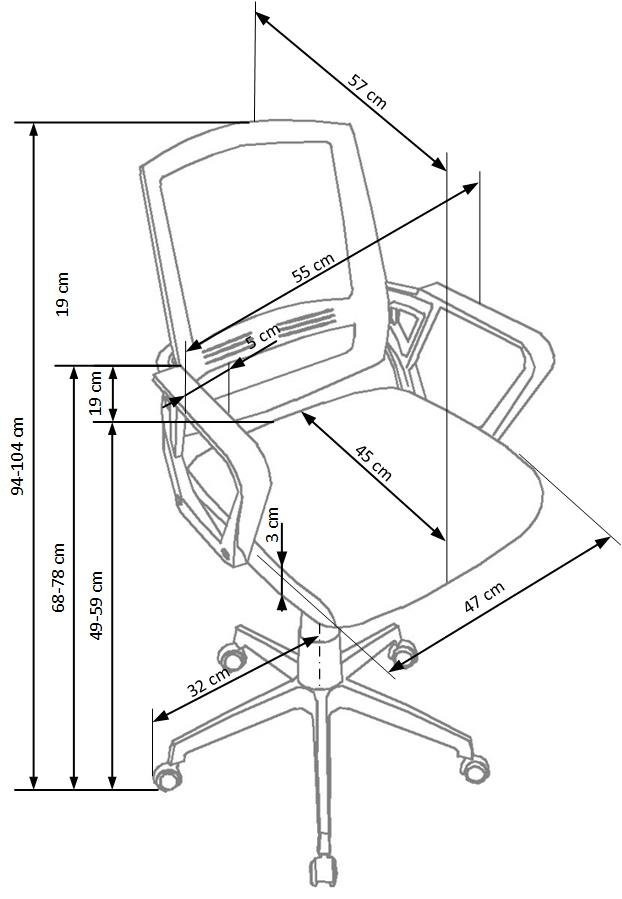- Materiali sedeža in naslonjala: mreža, mrežasta tkanina