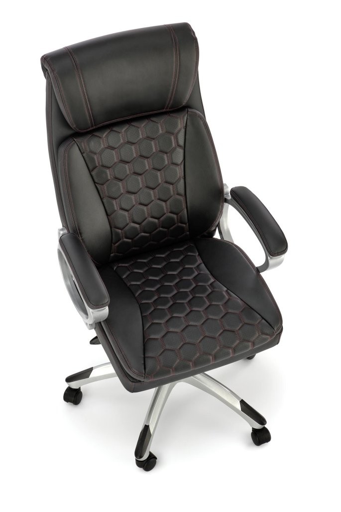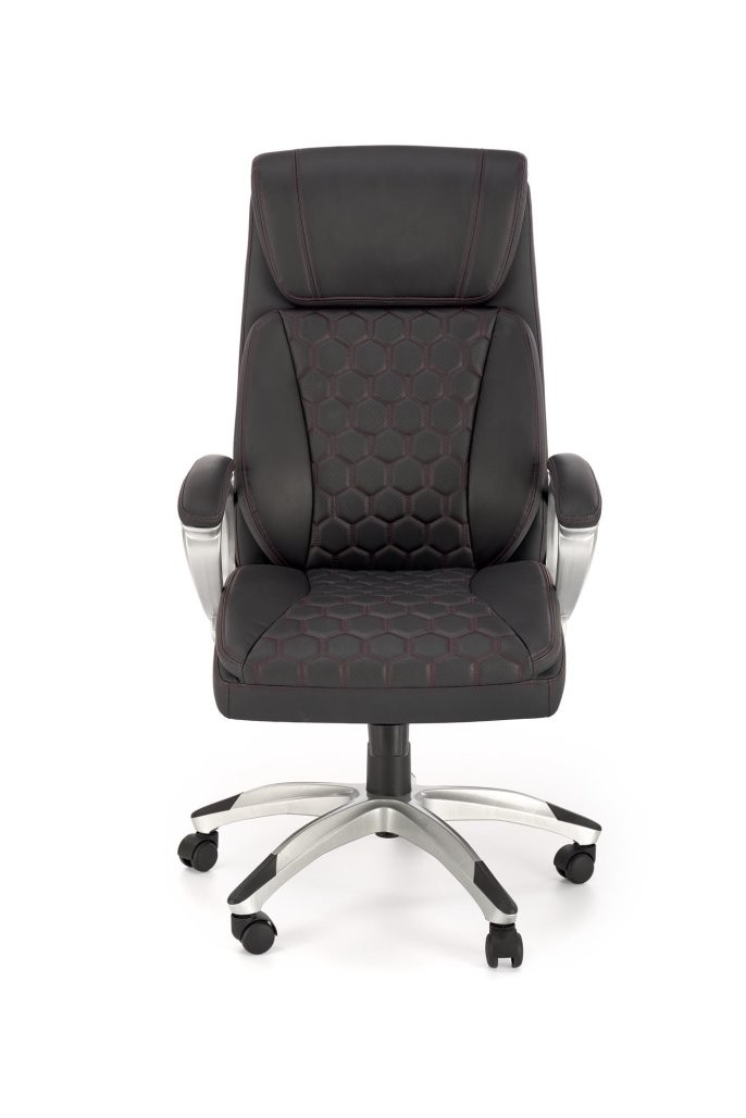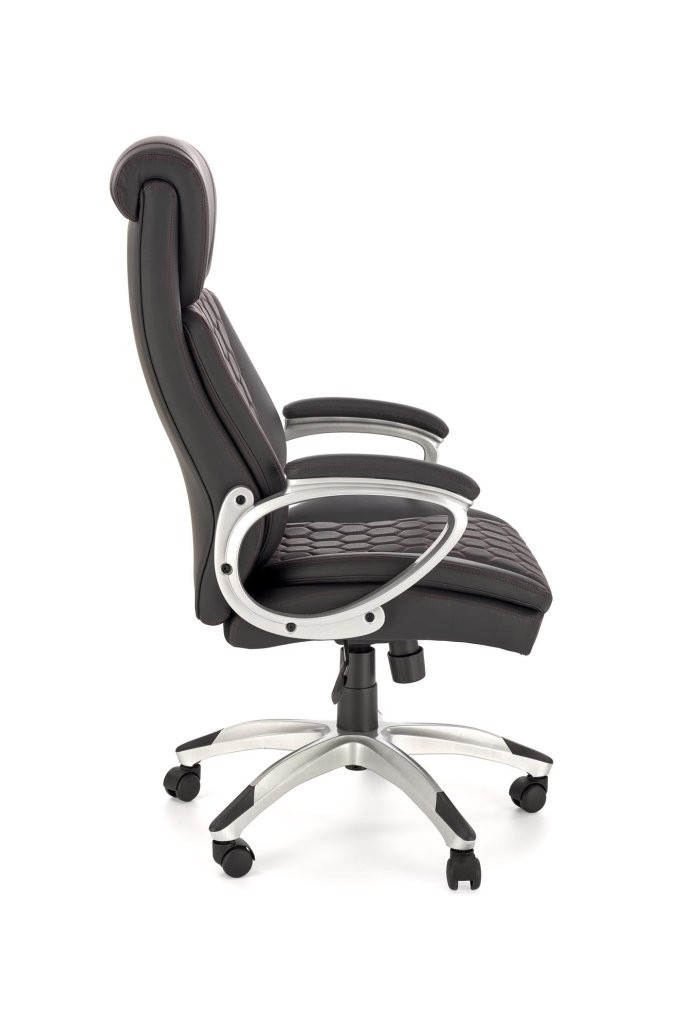 Pisarniški stol Selrin s TILT mehanizmom za dodatno udobje, oblazinjen v perforiranem umetnem usnju. Eleganten in funkcionalen kos v črni barvi, idealen za pisarne.