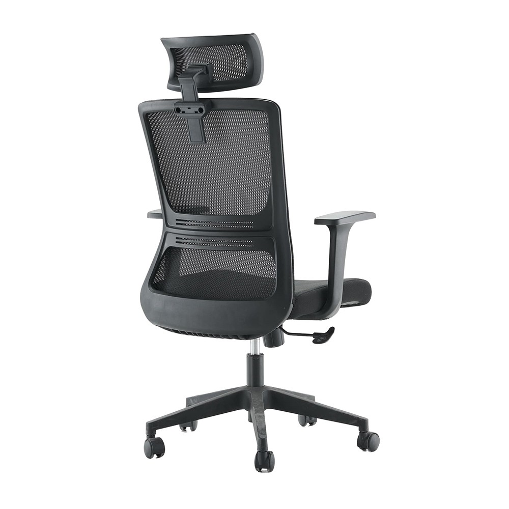 Odkrijte udobje in funkcionalnost s pisarniškim stolom TED, ki je na voljo v črni barvi. Stol je vrtljiv in nastavljiv po višini. Hrbtišče je ergonomsko oblikovano, kar omogoča udobno sedenje. Stol ima gumirana koleščka, ki ne poškodujejo tal. Sedišče pa je napolnjeno s peno visoke gostote za maksimalno udobje. Naslon za glavo je nastavljiv po višini, rokonasloni so fiksni. Maksimalna obremenitev znaša 100 kg.